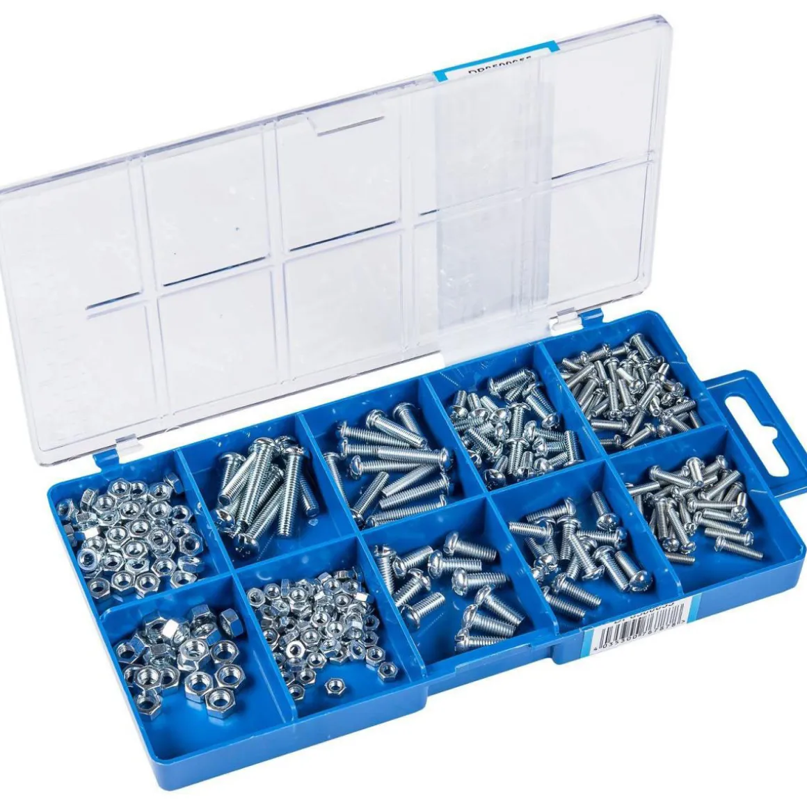 Mit dem Connex Gewindeschrauben Sortimentskasten haben Sie immer die passende Schraube zur Hand. Das Set enthält insgesamt 275 verzinkte Schrauben und Muttern in verschiedenen Größen, die sich perfekt für den Einsatz im Innenbereich eignen.