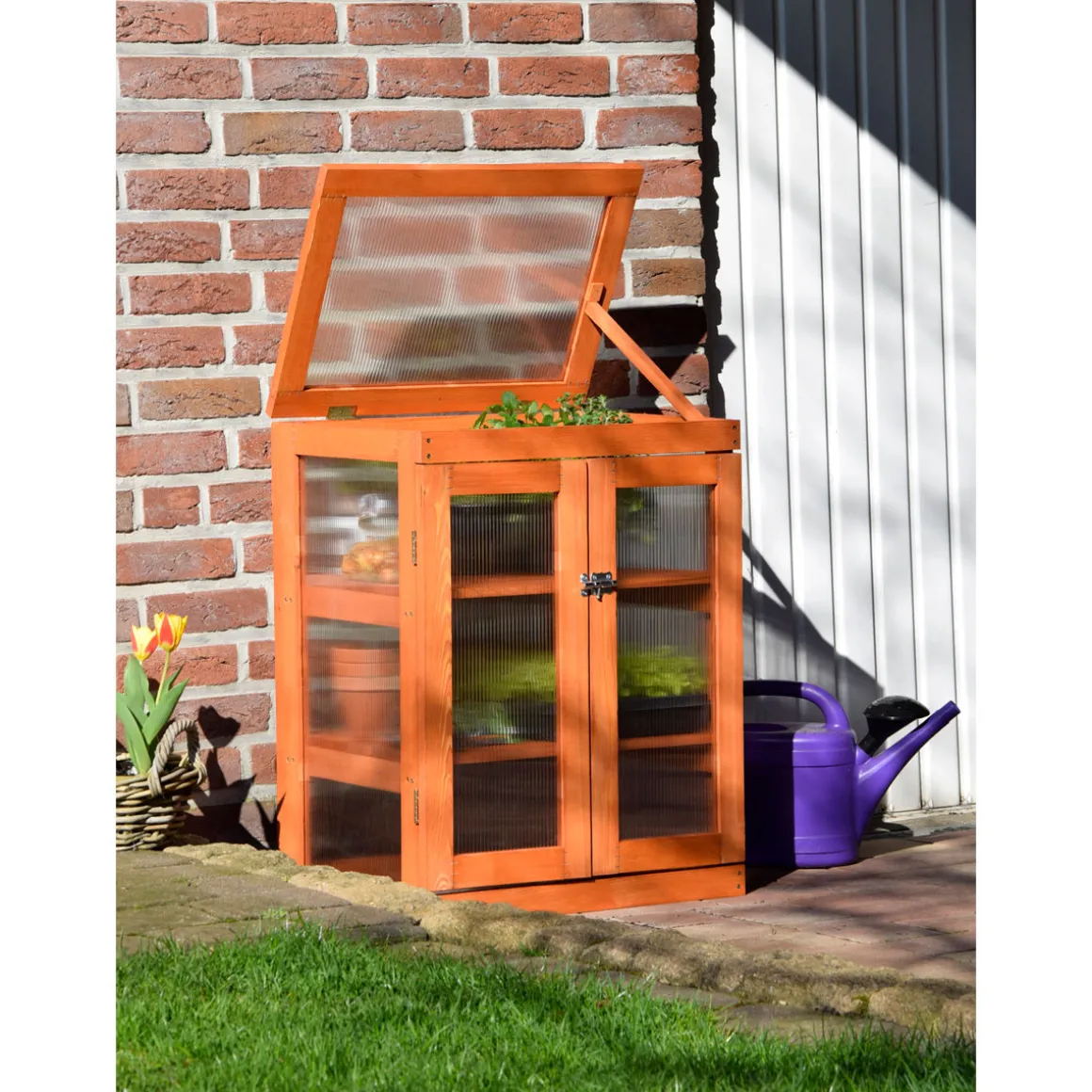 Träumen Sie von einem kleinen Gartenparadies, das perfekt auf Ihren Balkon oder in Ihren Garten passt? Das dobar Mini-Gewächshaus ist die ideale Lösung für alle Pflanzenliebhaber, die ihre Kräuter, Blumen oder Gemüsepflanzen optimal schützen und pflegen möchten. Mit seinem charmanten Design aus hochwertigem Kiefernholz und den praktischen Polycarbonat-Fenstern vereint dieses Frühbeet Funktionalität und Ästhetik. Genießen Sie die Freude am Gärtnern zu jeder Jahreszeit – ob als Indoor-Treibhaus oder dekoratives Highlight im Außenbereich.