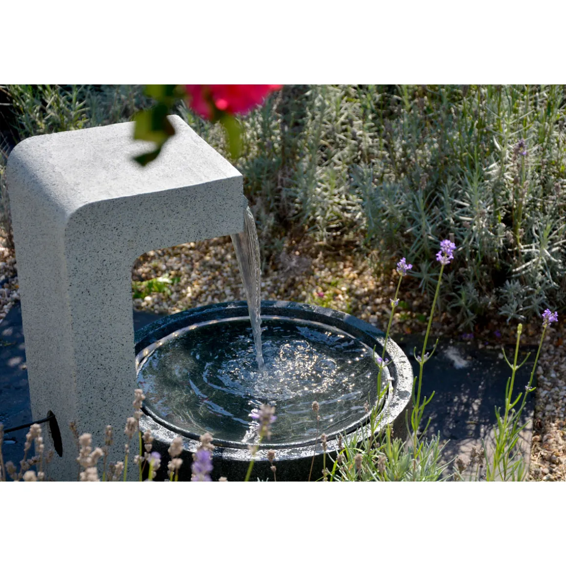 - Eckige Form mit runder Schale verleiht dem Brunnen ein modernes Design passend zu jedem Gartenstil