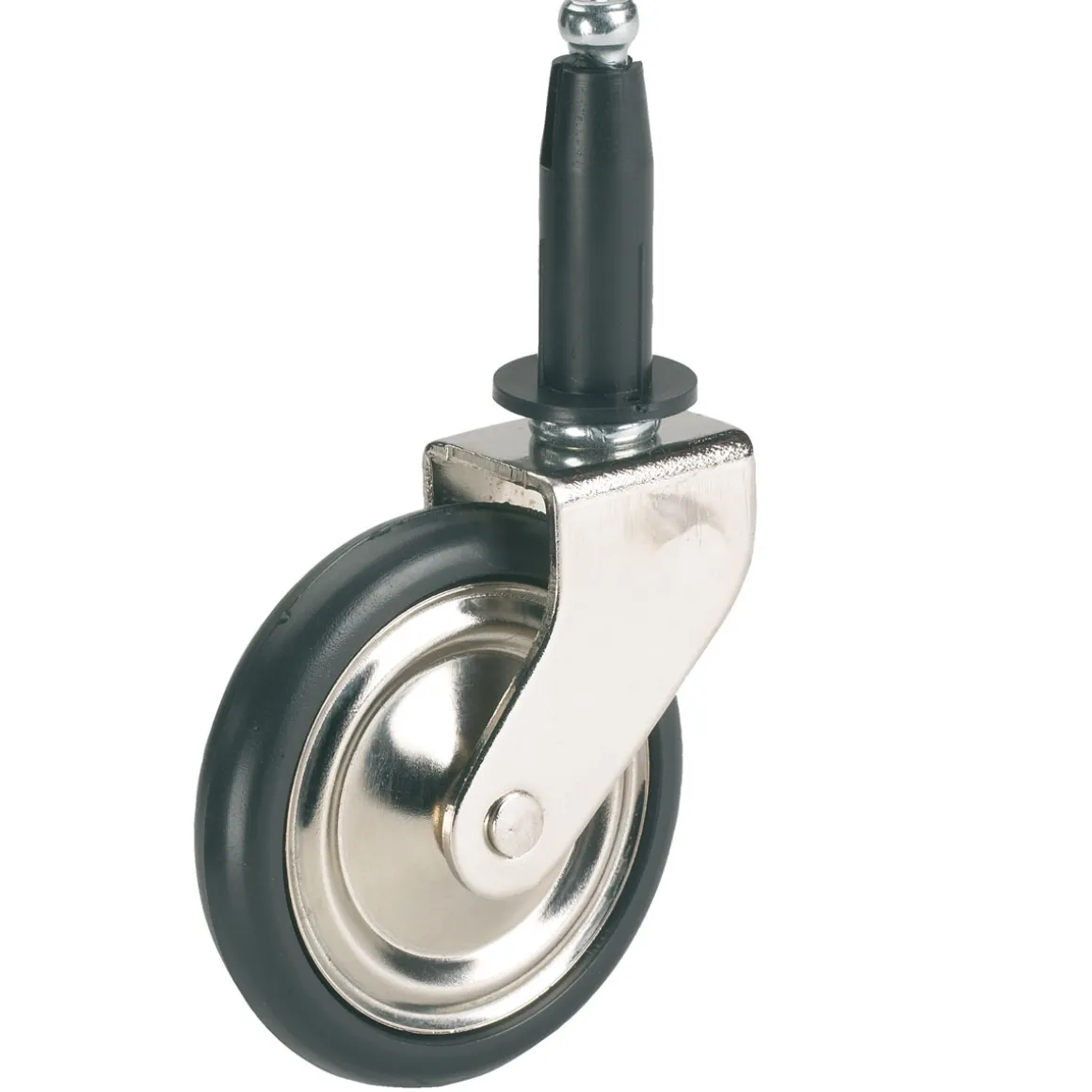 - Hochwertige Räder aus vernickeltem Stahlblech mit Laufring aus Kunststoff und Gleitlager