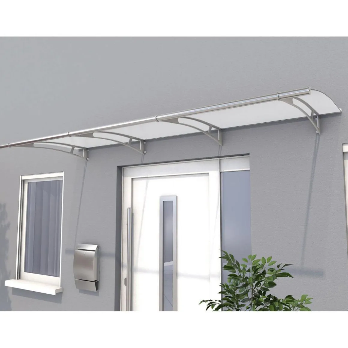Das filigrane Design verleiht Ihrem Eingang einen neuen Touch und fügt sich dank seines zeitlosen Designs harmonisch in das Gesamtbild ein. Hochwertige Edelstahlhalterungen sorgen für eine stabile Konstruktion, die in Kombination mit der witterungs- und UV-beständigen Acrylglasabdeckung vor Regen, Wind und Schnee schützt. Material: Träger aus Edelstahl mit integrierter Regenrinne aus silber eloxiertem Aluminium, Abdeckung aus 4 mm satiniertem Acrylglas, vormontiert, inkl. komplettem Montagezubehör, Maße: 270x95x17 cm (BxTxH)