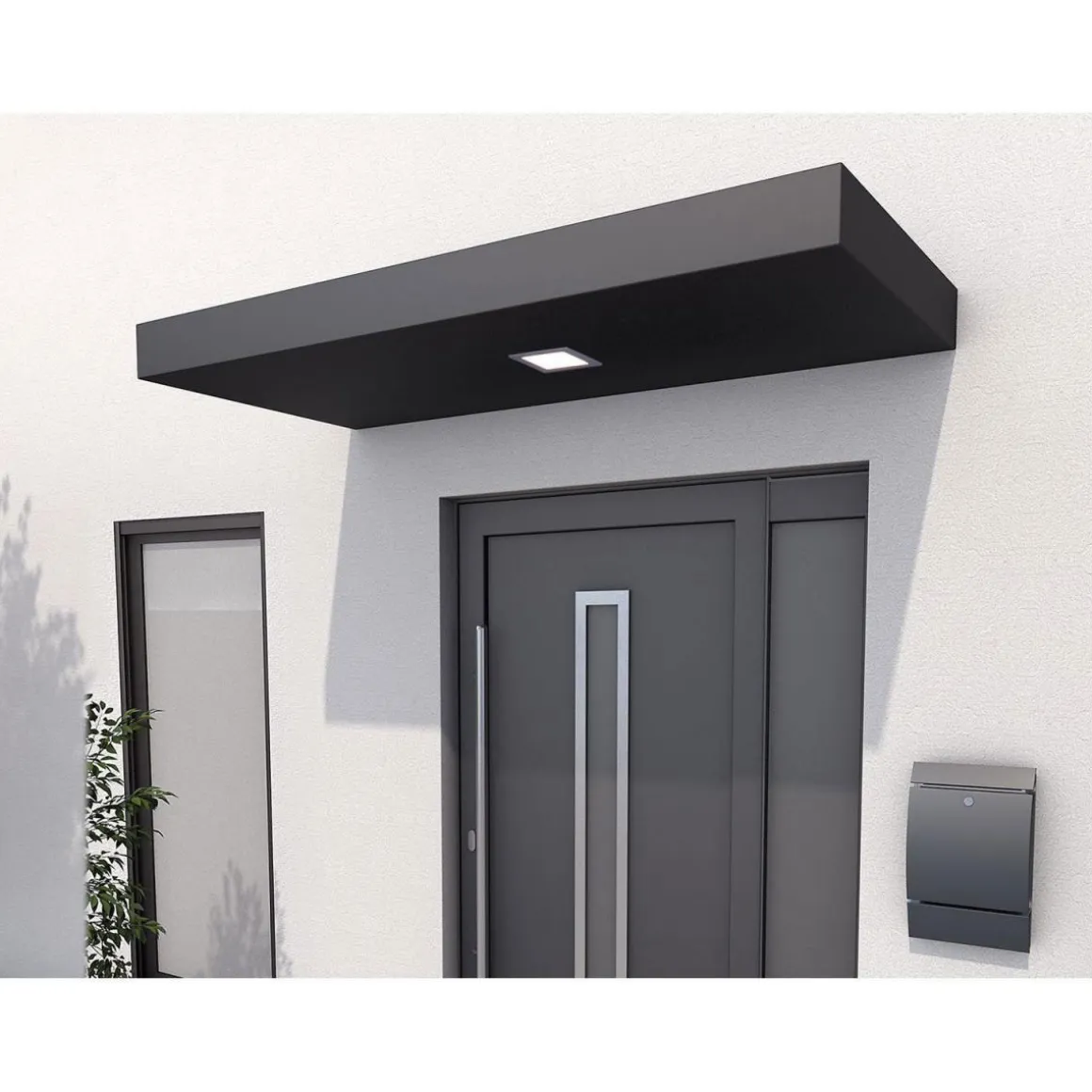 Wichtige Info: Diese Ausführung bedarf einer fundierten Beratung unserer Experten und ist daher nicht im Online-Shop bestellbar. Wir freuen uns auf Ihren Besuch in unseren Märkten, um gemeinsam mit Ihnen ein Vordach speziell nach Ihren Wünschen zu finden! Der Bauhaus-Stil ist zurück. Klare, gerade Linien und Formen, die sich auf das Wesentliche konzentrieren, erleben ein beeindruckendes Comeback. Der Klassiker wird wieder zum Lifestyle. Altbauten in passender Optik sind ebenso gefragt wie Neubauten mit kubischen Bauformen. Mit unserem neuen Rechteckdach können Sie für das i-Tüpfelchen Ihres Zuhauses sorgen und auch am Eingangsbereich mit einer klassisch-modernen Formgebung die Architektur krönen. Außenmaterial: aus pulverbeschichtetem Aluminium, Farbe anthrazit mattFüllung: PU Schaum, schallabsorbierend und formstabilvormontiert, inkl. komplettem MontagezubehörMaßanfertigung von 160 bis 199 cm.