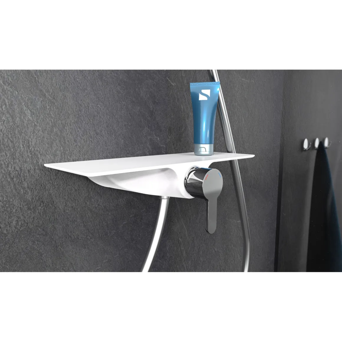 Produktdetails der Duscharmatur Waterway weiß mit Ablage