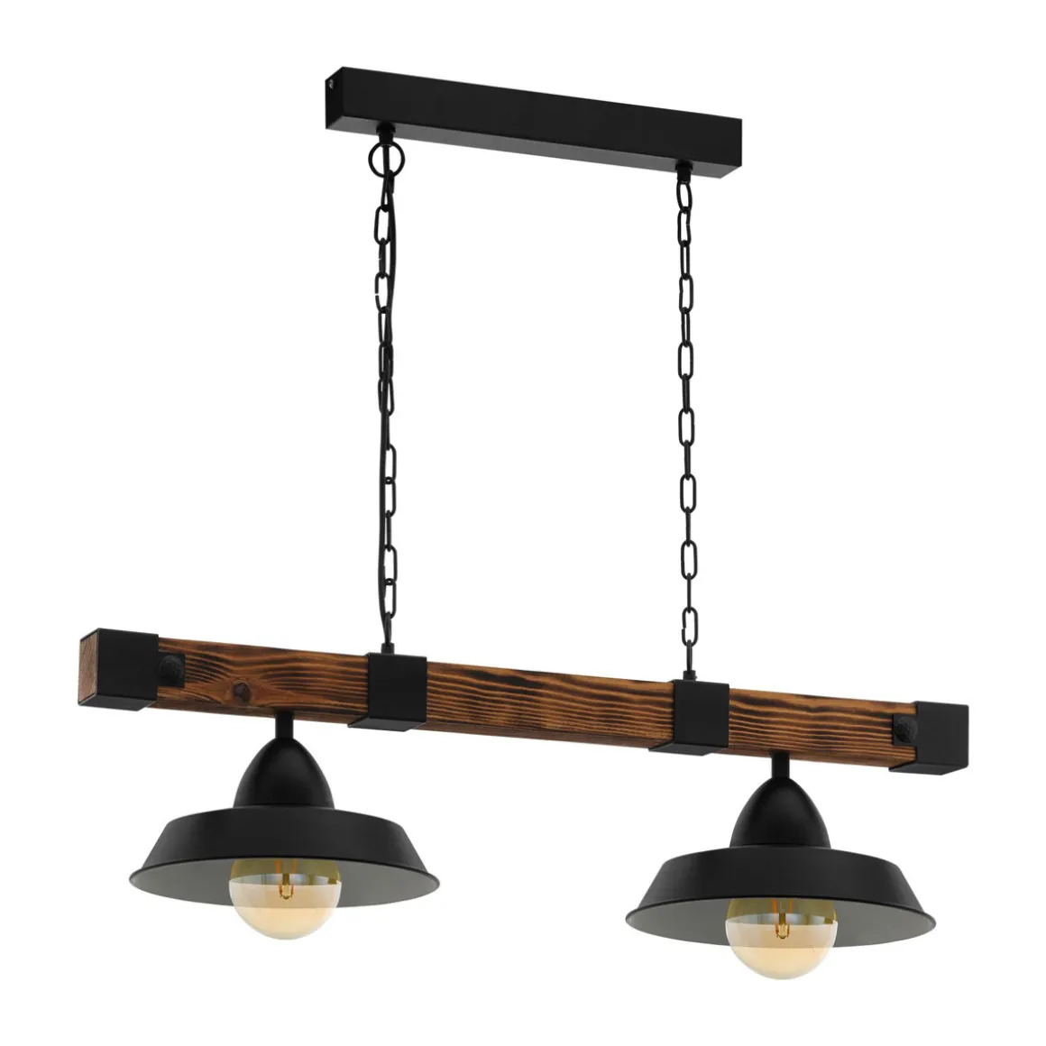 Die Eglo Hängeleuchte Oldbury ist eine moderne Leuchte im angesagten Industrial-Stil. Mit ihrem schwarzen Holzgestell und dem schwarz lackierten Stahl-Schirm passt sie perfekt in ein rustikales, naturbelassenes Ambiente. Die rechteckige Form und die Maße von 86x26x110 cm machen sie zu einem Blickfang über jedem Esstisch oder in Wohnbereichen.