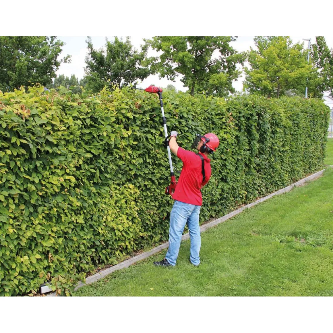 - Lieferumfang: Multifunktionswerkzeug bestehend aus Hochheckenschere und Hochentaster, Tragegurt, Schwertschutz (ohne Akku und Ladegerät)