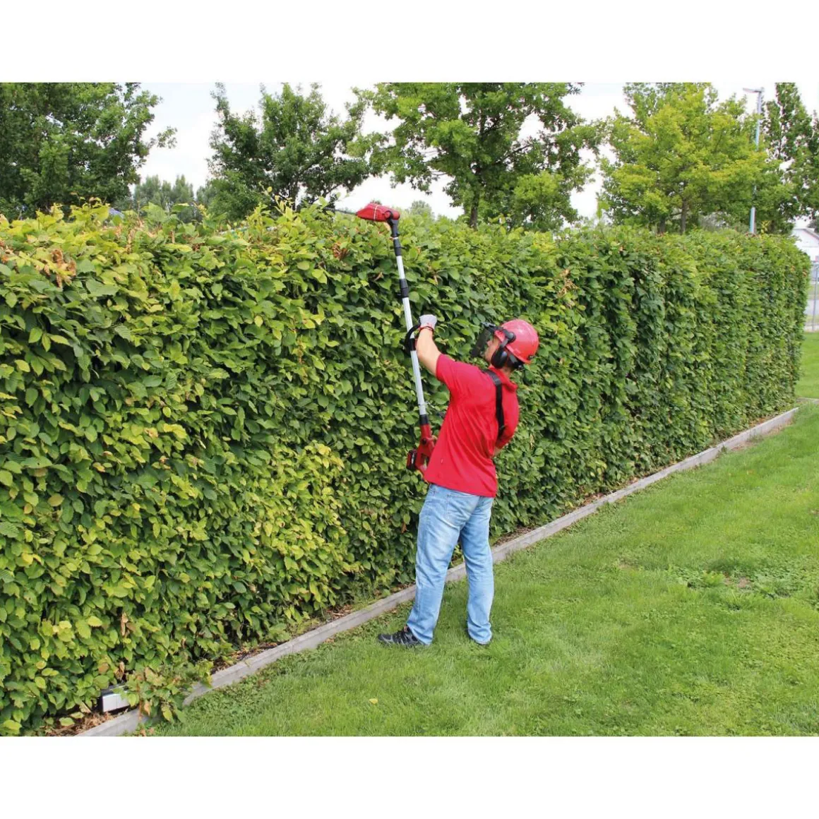 Mit der Einhell Akku-Teleskop-Heckenschere GE-HH 18/45 Li T – Solo wird das Heckenschneiden zum Kinderspiel. Dank des stufenlos ausziehbaren Teleskopstiels und des abwinkelbaren Kopfes erreichen Sie mühelos auch schwer zugängliche Stellen.