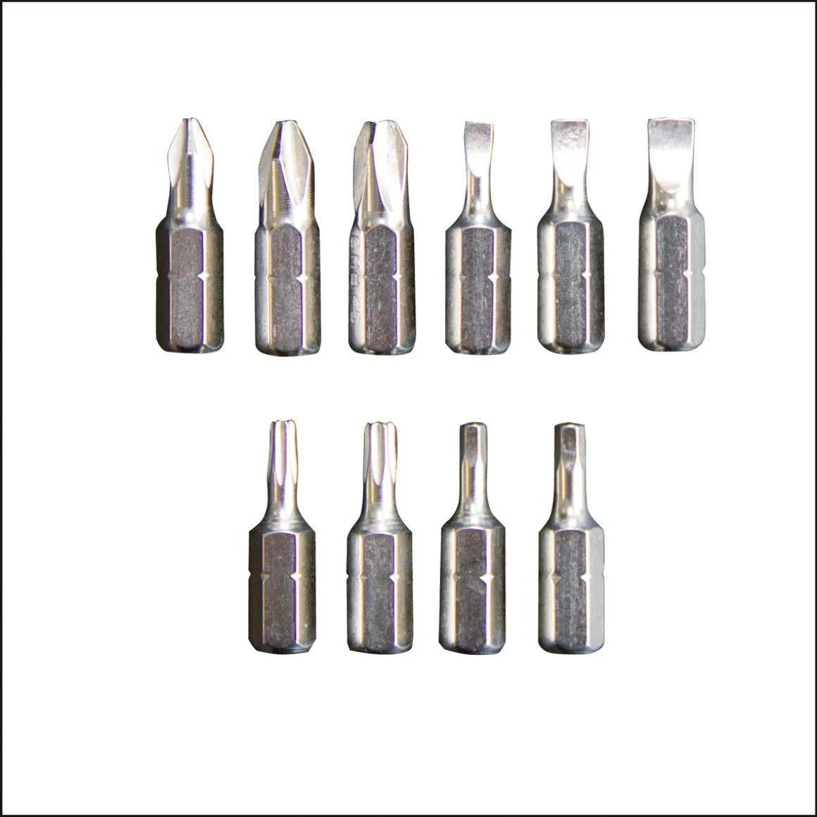 - Lieferumfang enthält ein 10-teiliges Bit-Set sowie eine Metallbox