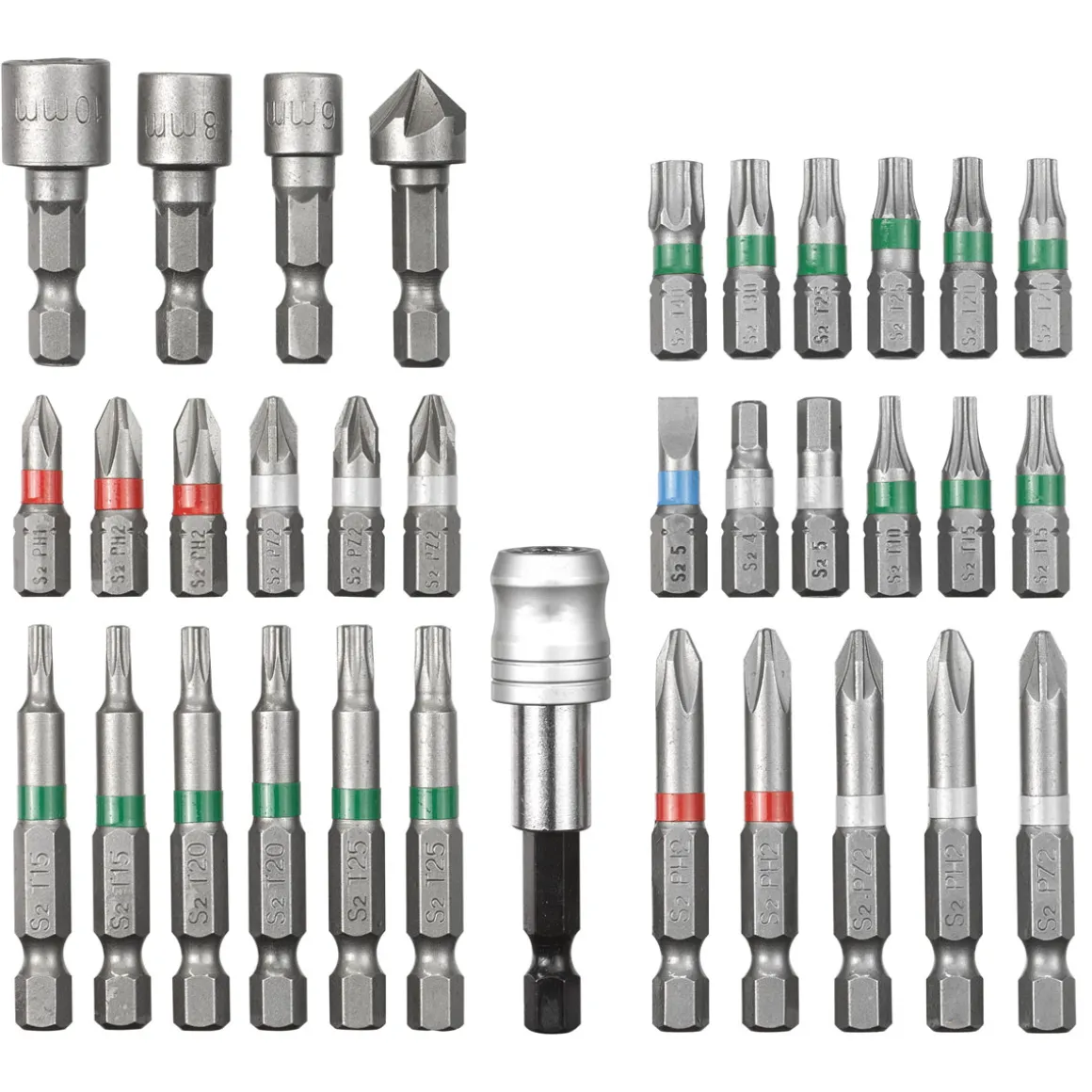 - Lieferumfang: 29 Bits, 1 Senker, 1 Schnellwechselbithalter, 3 Steckschlüsseleinsätze, Aufbewahrungsbox