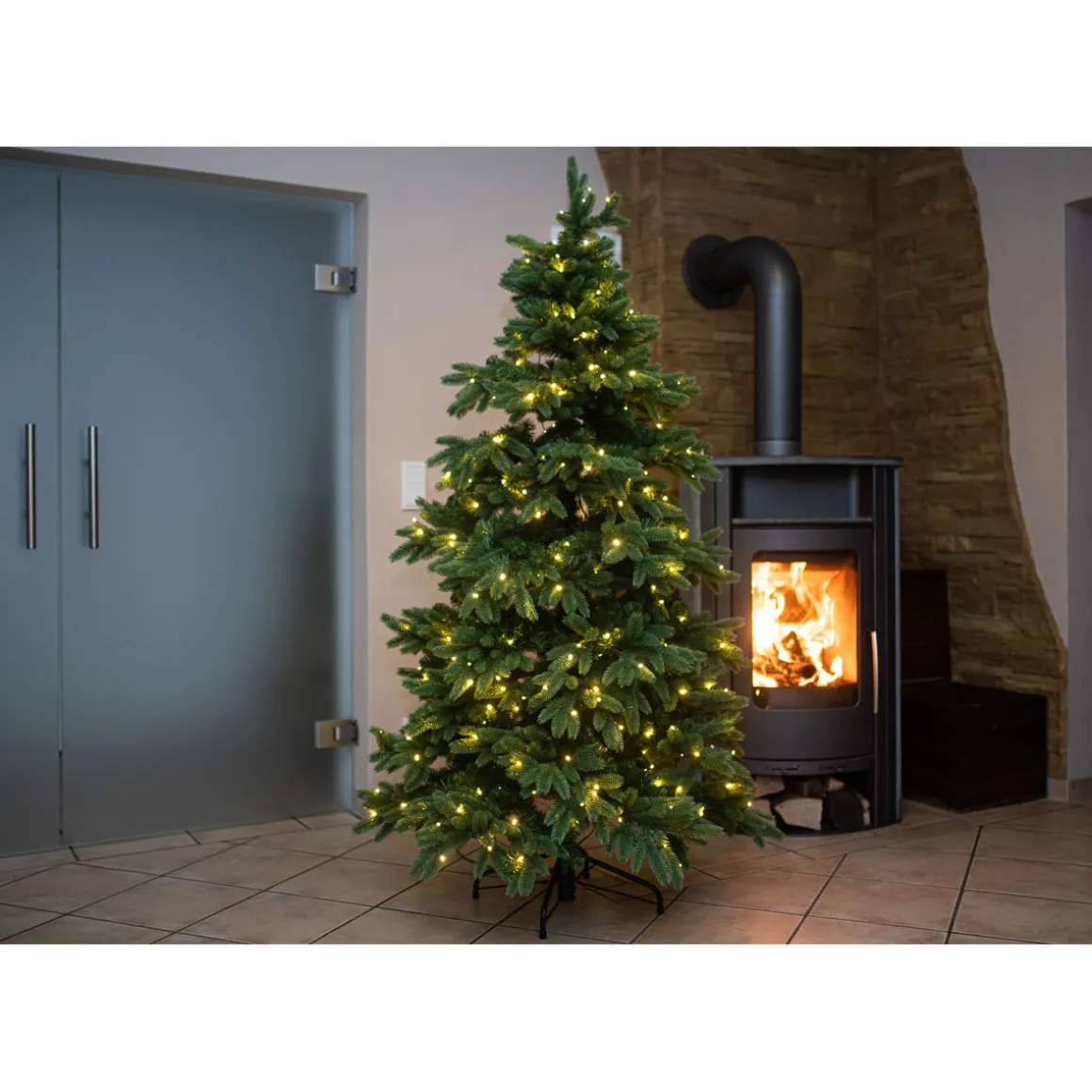 Evergreen künstlicher Weihnachtsbaum Roswell Kiefer Inkl. LEDs Grün 210 cm Immergrün, nadelfrei und langlebig! Dichte & biegbare Zweige aus hochwertigem Kunststoff sorgen für einen hohen Echtheitsfaktor der Weihnachtsbäume von Evergreen. Der künstliche Weihnachtsbaum Roswell von Evergreen besticht durch sein besonders naturnahes Aussehen, denn dank der dichten und biegbaren Zweige aus hochwertigem Kunststoff unterscheidet sich der Baum kaum von einem echten Weihnachtsbaum. Durch den stabilen Ständer aus Metall steht der Weihnachtsbaum „alle Jahre wieder“ absolut kippsicher. Der Baum ist durch ein schnell montiertes Stecksystem inklusive Lichterketten fix zusammengebaut, und darf nach Herzenslust dekoriert werden. Lassen Sie Ihrer Kreativität freien Lauf, und schmücken Sie Ihren Weihnachtsbaum ganz nach Ihren Wünschen mit Kunstschnee und glitzernden Kugeln. Die künstlichen Weihnachtsbäume eignen sich aufgrund ihrer langjährigen Nutzbarkeit hervorragend als Deko-Element für Hotels, Kaufhäuser und Unternehmen. Besonderheiten: Künstlicher Weihnachtsbaum in Kiefernoptik Ca. 2581 biegbare Nadelzweige Dichtes und natürliches Aussehen Stecksystem für einfachen Aufbau Zeitersparnis durch vormontierte LED-Lichterkette 500 LEDs Unkomplizierte Positionierung auf dem Metallständer Platzsparend zu verstauen Im Lieferumfang enthalten: Metallständer LED-Lichterkette mit Netzstecker Hinweis: Um eine langjährige Nutzung Ihres Weihnachtsbaumes zu gewährleisten, sollte der Baum ausschließlich Indoor aufgestellt werden.