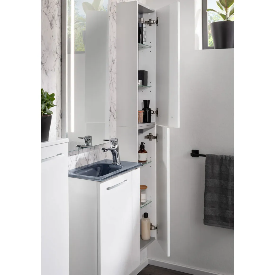 Dieser schlanke und elegante Hochschrank eignet sich perfekt für alle Kunden mit kleinen Badezimmern oder Gästetoiletten. Er bietet viel Stauraum auf kleinem Raum und überzeugt durch seine hochwertige Verarbeitung.