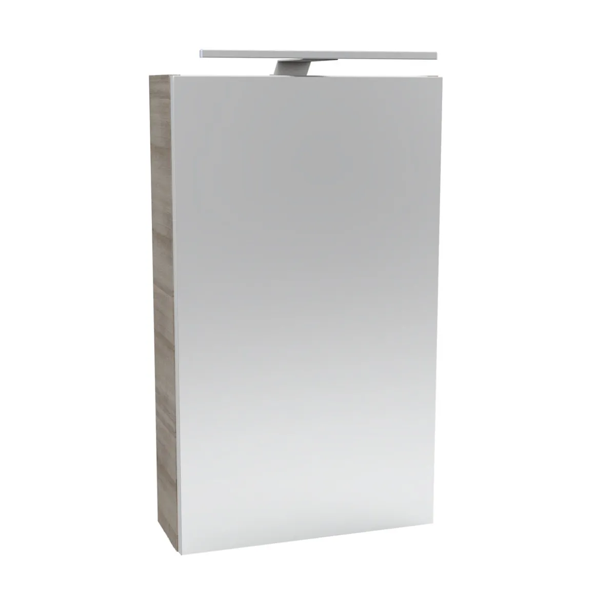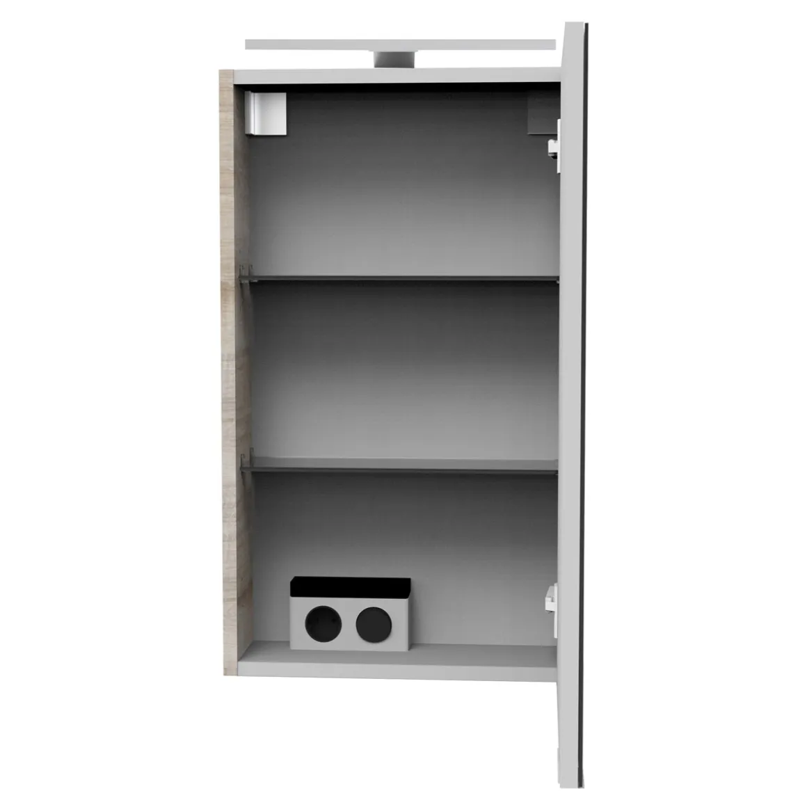 - Graueiche Korpusfarbe mit einseitig verspiegelter Front