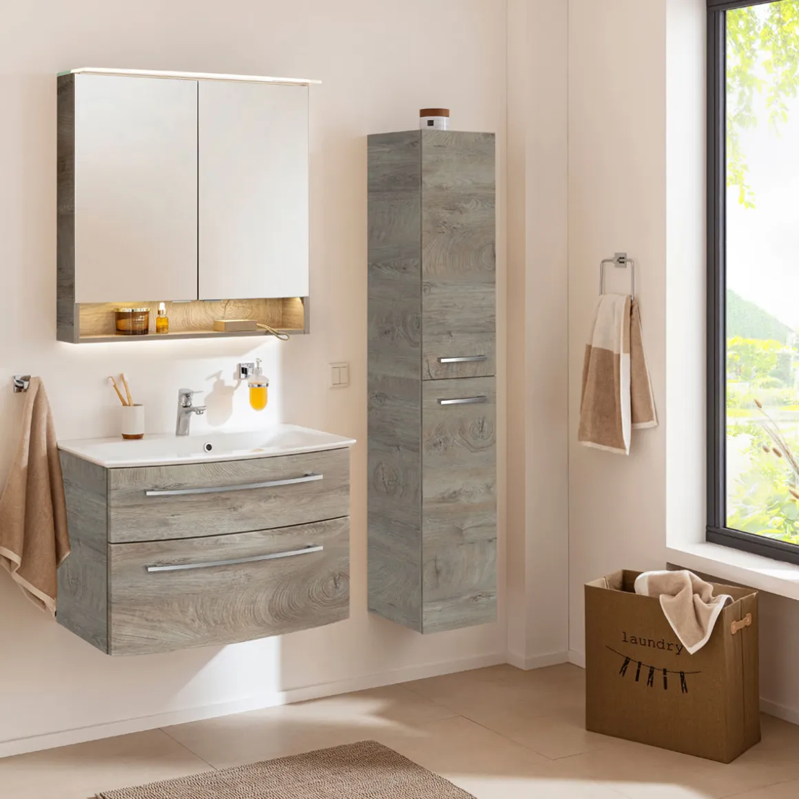 Fackelmann Spiegelschrank B.Style 800 x 812 x 153 mm Nature Oak LED