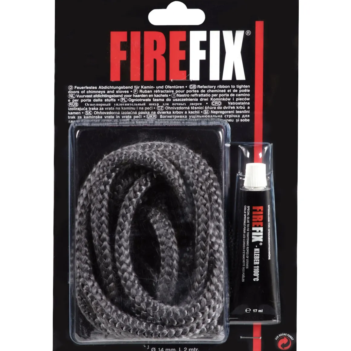 FIREFIX Dichtung-Set für Kaminscheiben Kordel 2 m Durchmesser 14 mm