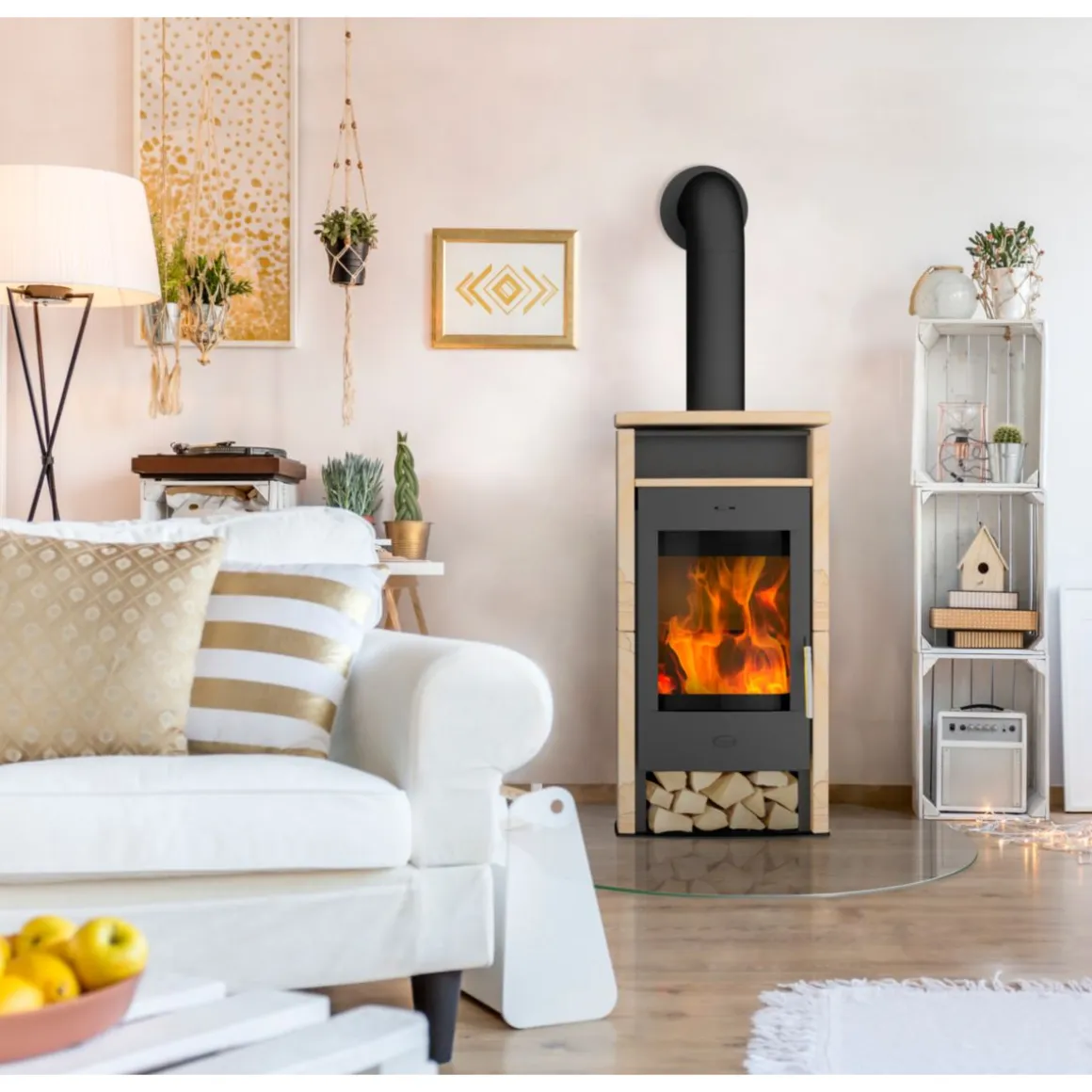 Der Kaminofen Santiago Sandstein verbindet natürliche Schönheit mit moderner Heiztechnik. Seine Verkleidung aus edlem Sandstein verleiht jedem Raum eine warme, einladende Ausstrahlung. Mit einer Nennwärmeleistung von 6 kW sorgt er für behagliche Temperaturen und gemütliche Stunden – stilvoll, effizient und langlebig.