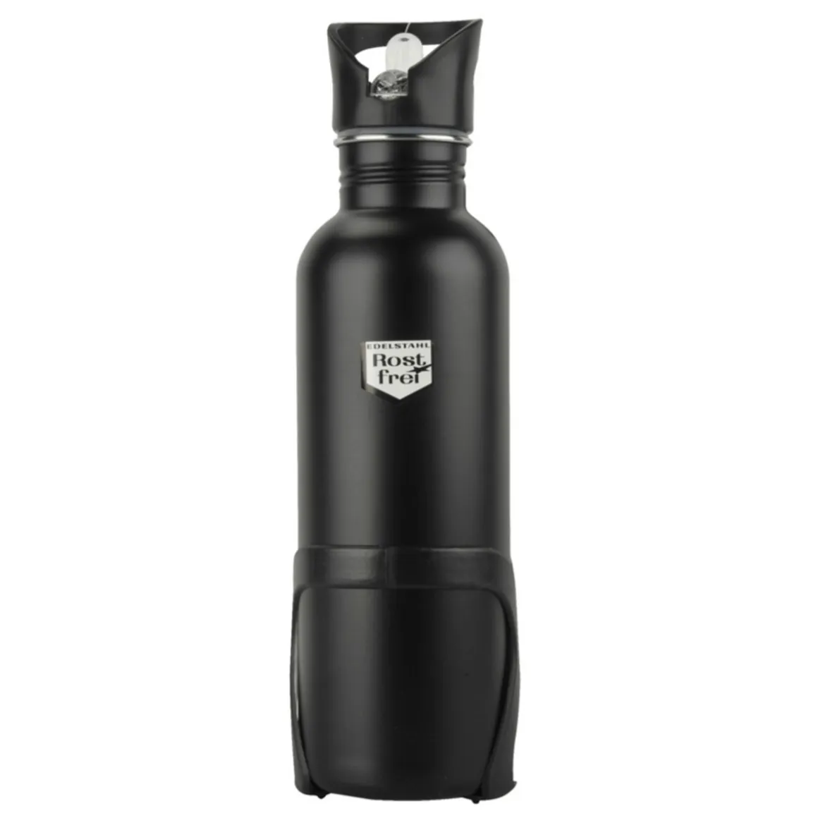 Fischer Trinkflasche Edelstahl mit Halter schwarz 750 ml