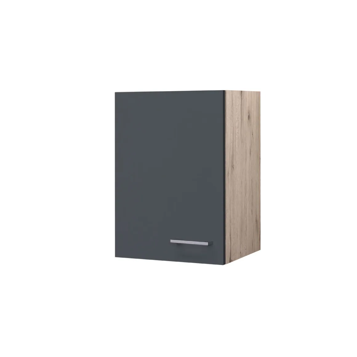 Dieser Flex-Well Küchenoberschrank Tiago wurde speziell entwickelt, um den Bedürfnissen unsererKunden gerecht zu werden. Wenn Sie nach einer Möglichkeit suchen, Ihre Küche nicht nur funktional, sondern auch optisch aufzuwerten, dann ist dieses Modell genau das Richtige für Sie! Die Kombination aus modernem basaltgrauem Finish und natürlicher Holzoptik passt perfekt zu jedem Einrichtungsstil – ob minimalistisch oder gemütlich-rustikal. Dank seiner kompakten Größe eignet sich der Schrank ideal sowohl für große als auch kleine Küchenräume. Und das Beste? Die einfache Montage spart Ihnen Zeit und Mühe! Lassen Sie sich von diesem praktischen Allrounder begeistern.