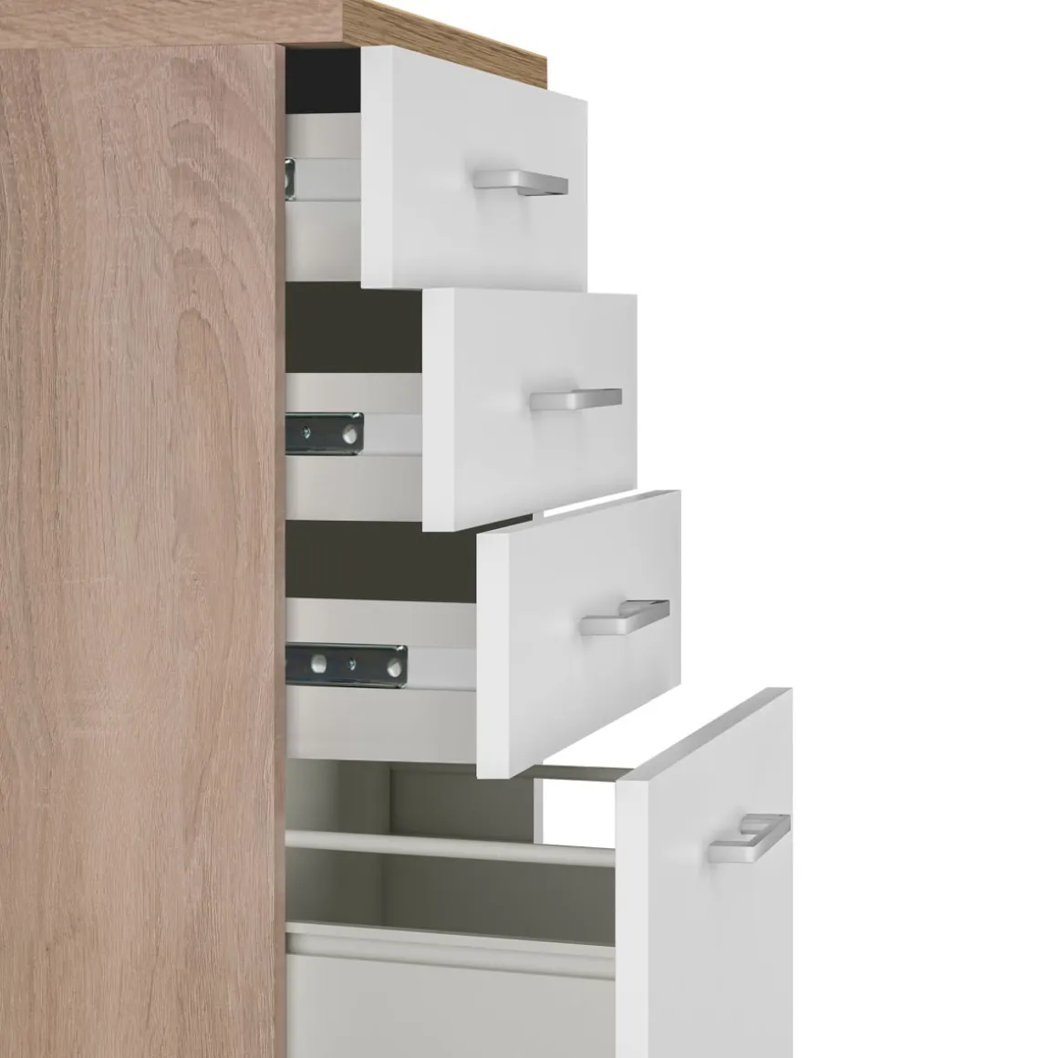 - Zusätzlicher Auszug unten mit großzügigem Innenmaß von 43,6 cm Breite und 23,2 cm Höhe für mehr Stauraum