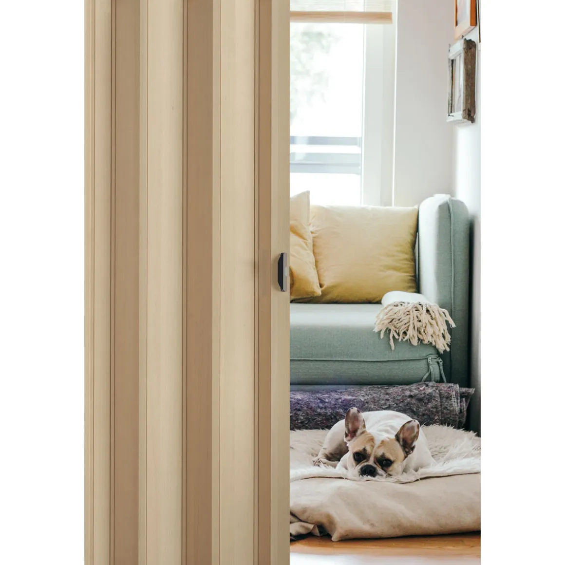 Hochwertig bedruckte Varianten für holzähnliche Oberflächen oder in weiß-Pastell, die in jedes Ambiente passen. Falttüren können in Türbereiche mit und ohne Zargen eingebaut werden und eignen sich damit perfekt für alle Bereiche im Wohn- und Gewerbebereich. Hochwertige Faltmechanismen ermöglichen ein geräuschloses Öffnen und Schließen. 10 mm-Hohlkammerprofile geben der Tür gute stabile Eigenschaften, die ein langlebiges Produkt ausmachen.
