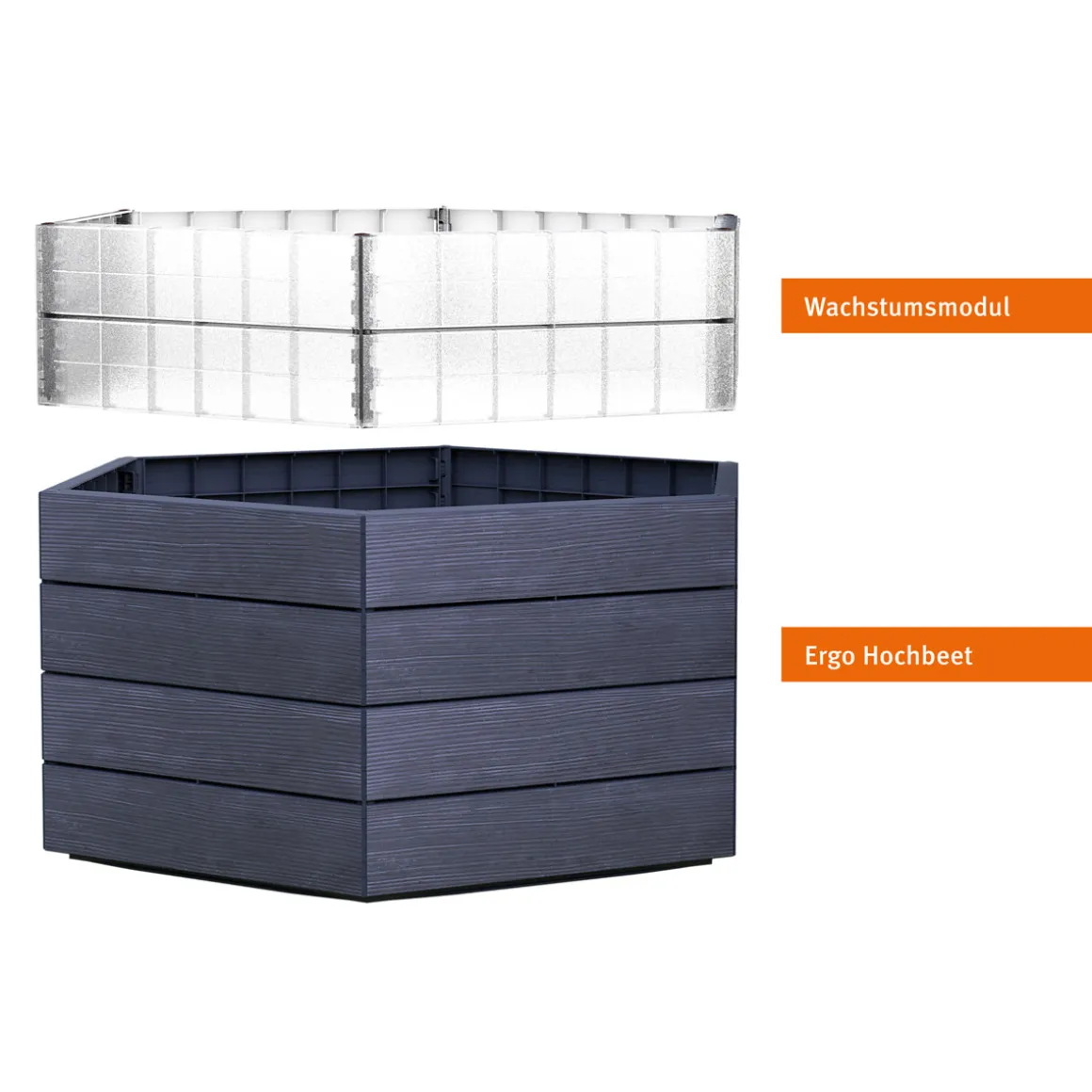 Mit dem Garantia Hochbeet Ergo Turbo L 75 Wood inkl. FLORA wird das Gärtnern zum Erlebnis. Das sechseckige, braune Hochbeet mit Holzoptik-Dekor bietet nicht nur Platz für eine Vielzahl von Pflanzen, sondern auch ein integriertes Bewässerungssystem und Wetterschutz. Die Montage ist kinderleicht und das Material zu 100% recycelbar.