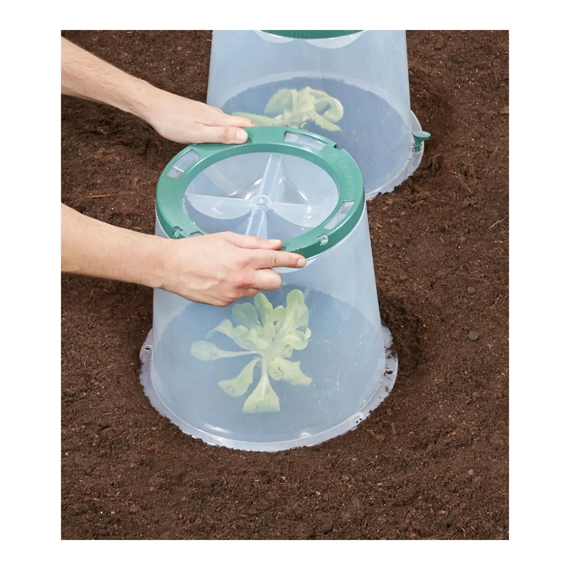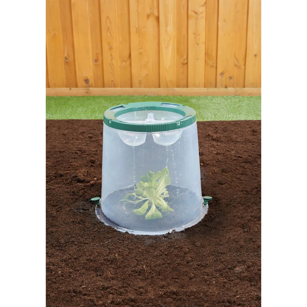 Mit dem Garantia Pflanzglocken-Set Sunny schützen Sie Ihre Pflanzen vor Witterungseinflüssen und sorgen gleichzeitig für eine optimale Bewässerung. Das Set besteht aus zwei transparenten Glocken mit einem Durchmesser von 35 cm und einem Belüftungs- sowie Bewässerungssystem. Die Glocken sind stapelbar und dank ihrer UV- und witterungsbeständigen Eigenschaften besonders langlebig.