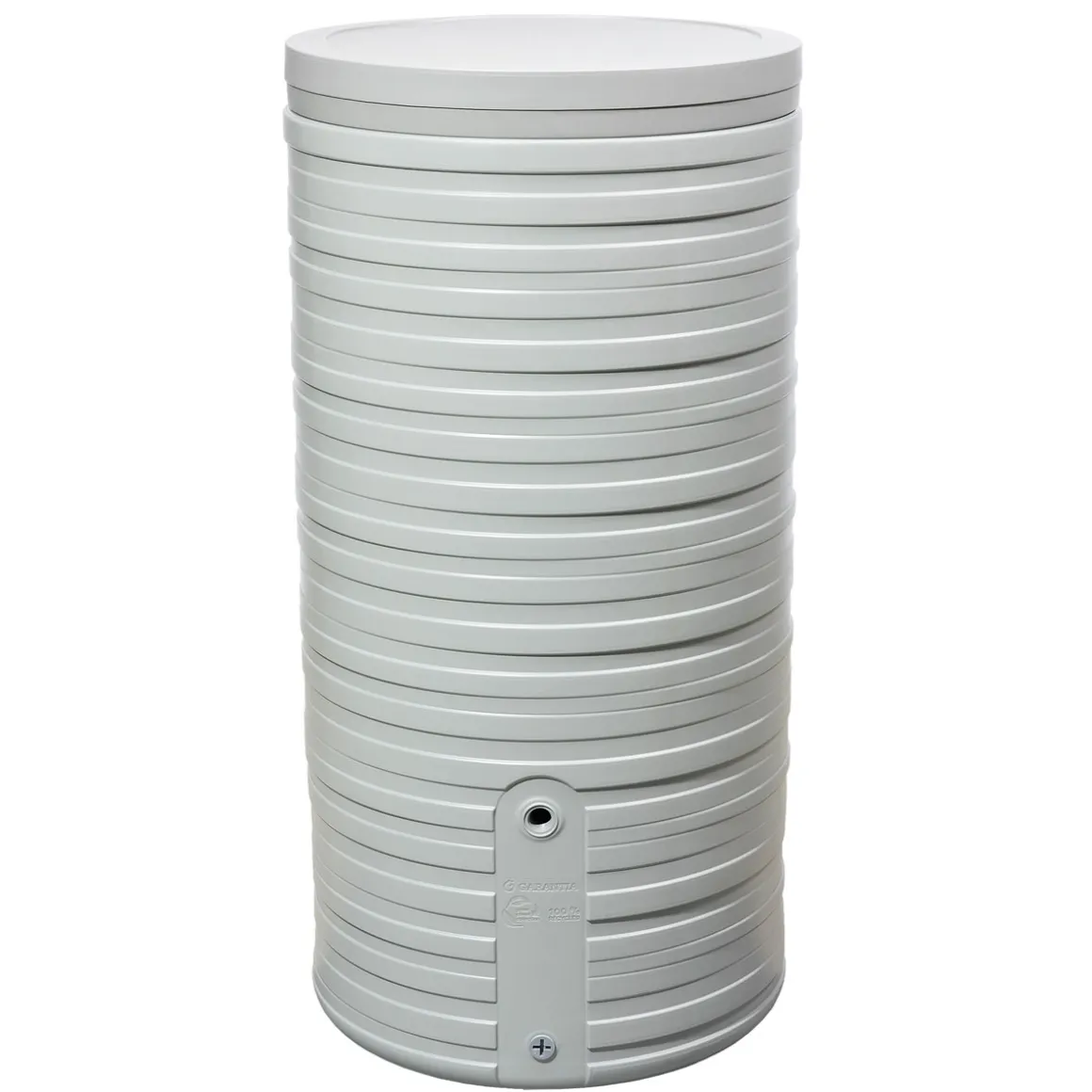 Garantia Regentonne Nordic steingrau – stilvoll und zeitlos. Dieser Regentonne überzeugt in Ihrem Garten durch sein nordisch schlichtes Design mit 3D-Dekor und seine moderne Farbgebung in einem hellen Grau. Die kompakten Abmessungen lassen die Regentonne elegant und dekorativ in Ihre Gartengestaltung einfließen. Diese Regentonne aus der Garantia Classic Line bietet Ihnen neben der Möglichkeit 300 Liter kostenloses Regenwasser zu sammeln und Ihren Garten damit nachhaltig zu bewässern, auch eine einfache und schnelle Wasserentnahme über den abnehmbaren Deckel mit integrierter Kindersicherung. Zusätzlich verfügt der Behälter über zwei integrierte Gewindeanschlüsse 19 mm (3/4“) für die Montage des Auslaufhahns (optionales Zubehör), eines Schlauchsets (optionales Zubehör) oder zur Restentleerung vor der Frostperiode. Ihr Regenwasserbehälter ist Witterungseinflüssen und starken Temperaturschwankungen ausgesetzt. Auf diese Bedingungen abgestimmte Materialien sorgen für eine lang anhaltend gute Optik. Darüber hinaus ist der Behälter für eine lange Lebensdauer im Freien vor Sonneneinstrahlung geschützt. Die Einwirkung des UV-Lichts wird auf ein Minimum reduziert. Bereits bei der Entwicklung eines Garantia Produkts wird sehr viel Wert auf ein nachhaltiges Produktdesign gelegt. Die Herstellung erfolgt auf modernsten Produktionsanlagen. Dies sorgt auf Dauer für weniger Umweltbelastung. Dieser Regenwasserbehälter wird aus Recyclingkunststoff hergestellt und ist zu 100 % recycelbar. Qualität Made in Germany. Behälter muss bei Frostgefahr im Winter vollständig entleert werden. Hinweis: Auslaufhahn und Fallrohranschluss nicht im Lieferumfang enthalten.