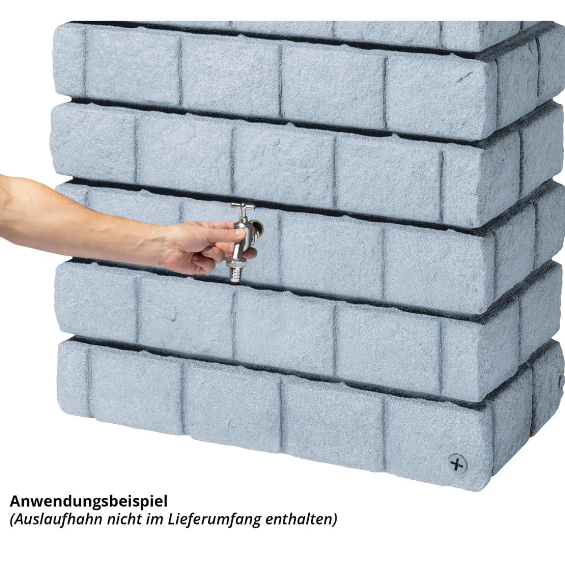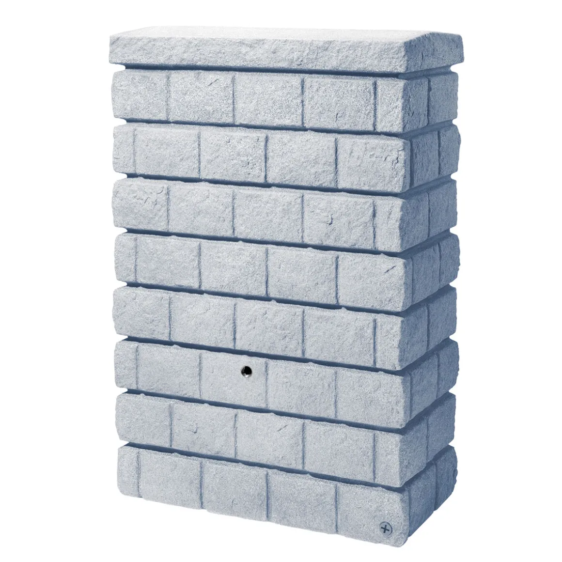 Wandtank Rocky Junior light granite – Besonders robuster Deko-Regentonne in naturgetreuer Steinoptik, zur Aufstellung an der Hauswand. Einzigartig in Design und Oberfläche, jeder Behälter ist aufgrund des Fertigungsverfahrens ein Unikat. Diese Regentonne aus der Garantia Exclusive Line setzt mit ihren hervorragend herausgearbeiteten Details und der dekorativen matten Oberfläche in 3D-Dekor, lebendige Akzente auf Ihrer Terrasse. Die helle und Granit graue Farbgebung des Rocky Wandtanks können Sie in Ihre Gartengestaltung integrieren und ideal mit anderen Grautönen kombinieren. Zusätzlich haben Sie die Möglichkeit 300 Liter kostenloses Regenwasser zu sammeln und Ihren Garten damit nachhaltig zu bewässern. Der Behälter verfügt außerdem über zwei hochwertige integrierte Messinggewinde 19 mm (3/4“) für die Montage des Auslaufhahns (optionales Zubehör), eines Schlauchsets (optionales Zubehör) oder zur Restentleerung vor der Frostperiode. Ihr Regenwasserbehälter ist Witterungseinflüssen und starken Temperaturschwankungen ausgesetzt. Auf diese Bedingungen abgestimmte Materialien sorgen für eine lang anhaltend gute Optik. Darüber hinaus ist der Behälter für eine lange Lebensdauer im Freien vor Sonneneinstrahlung geschützt. Die Einwirkung des UV-Lichts wird auf ein Minimum reduziert. Bereits bei der Entwicklung eines Garantia Produkts wird sehr viel Wert auf ein nachhaltiges Produktdesign gelegt. Die Herstellung erfolgt auf modernsten Produktionsanlagen. Dies sorgt auf Dauer für weniger Umweltbelastung. Dieser Regenwasserbehälter wird unter Einsatz von Recyclingkunststoff hergestellt und ist zu 100 % recycelbar. . Behälter muss bei Frostgefahr im Winter vollständig entleert werden. Hinweis: Auslaufhahn und Fallrohranschluss nicht im Lieferumfang enthalten.