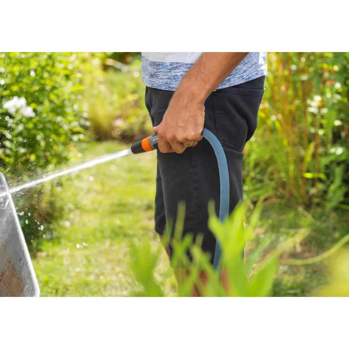 - Der Textilschlauch ist extrem belastbar und widerstandsfähig – ideal für anspruchsvolle Gärten.
