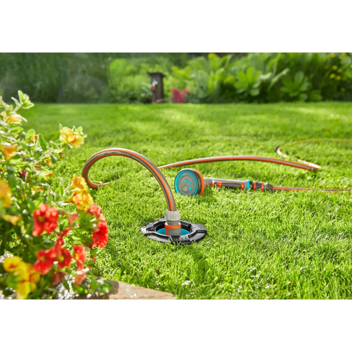 - Bequeme Wasserentnahme durch Wassersteckdosen an beliebigen Stellen im Garten möglich