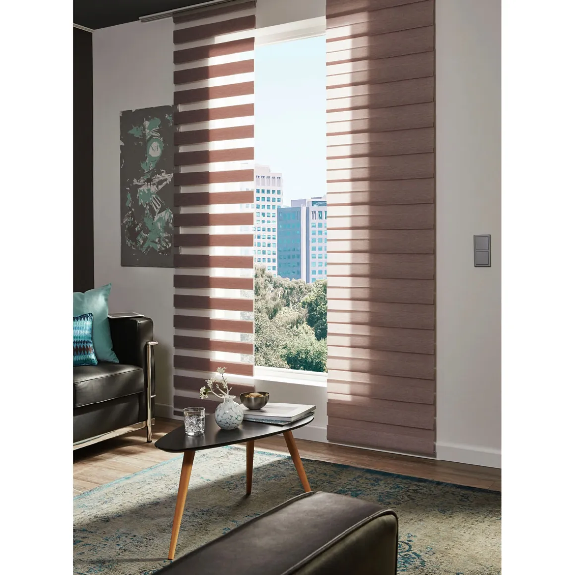 Der Gardinia Flächenvorhang Day+Night ist ideal für alle, die Wert auf eine stilvolle Einrichtung legen und gleichzeitig ihre Privatsphäre schützen möchten. Auch für Räume mit großen Fensterfronten oder als Raumteiler ist er bestens geeignet.