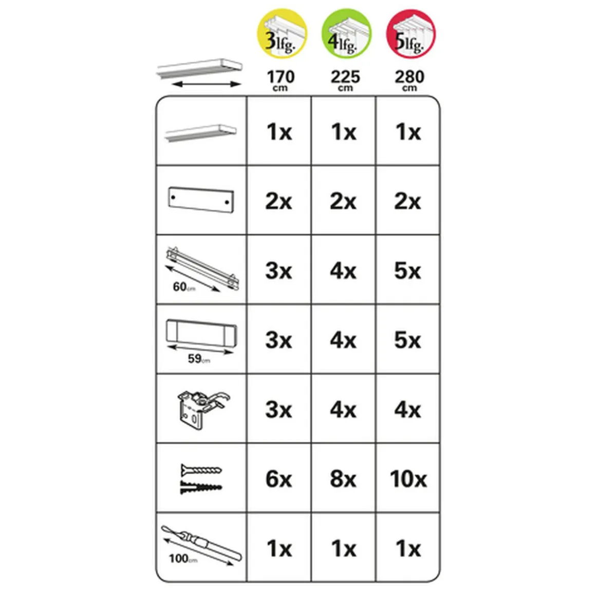 Gardinia Flächenvorhangschiene 3-läufig 170 cm Aluminium