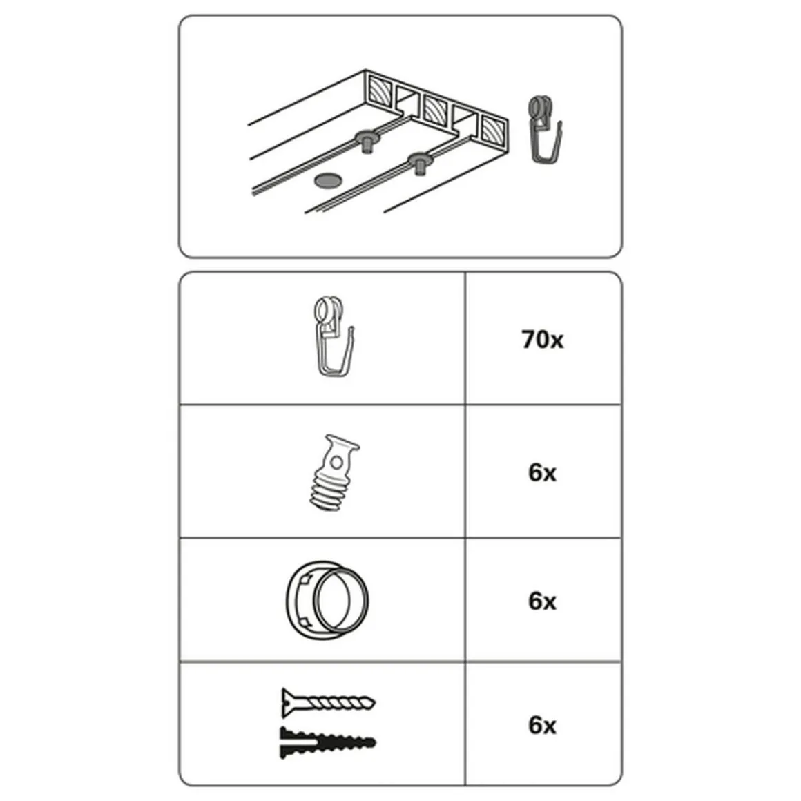 - Lieferumfang: 1 Zubehör-Set mit einer Ausführung für 2-läufige Vorhangschienen