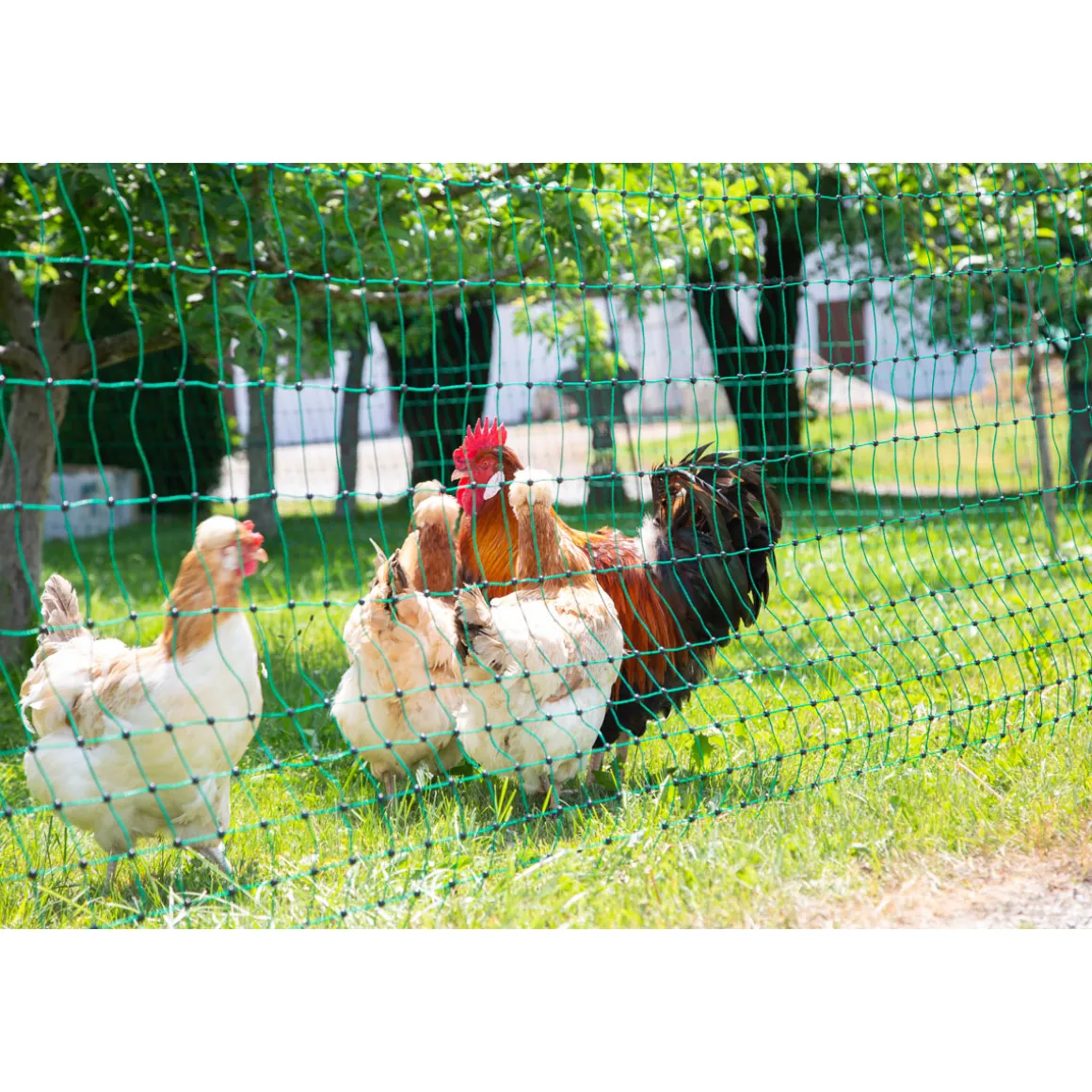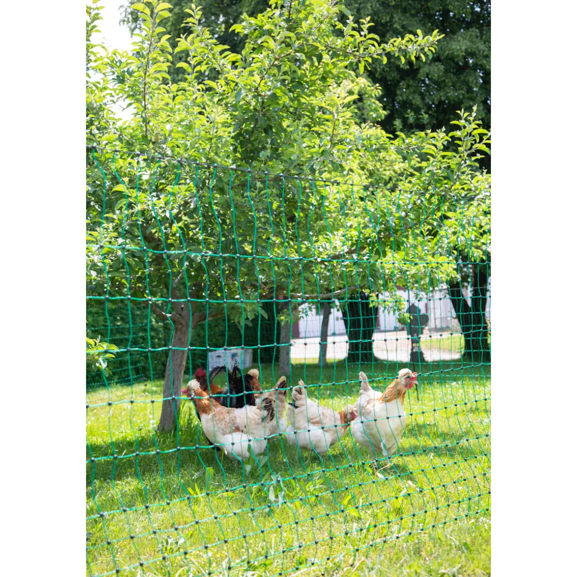Das Geflügelnetz PoultryNet ist ideal fürKunden, die ihre Geflügel sicher einzäunen möchten. Auch Lämmer können damit geschützt werden.