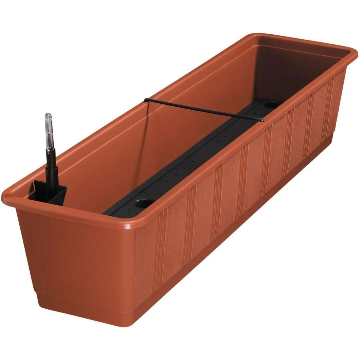 Erleben Sie mit dem Geli Geli Blumenkasten Aqua-Green plus 80 cm die perfekte Kombination aus Funktionalität und Design. Der Blumenkasten überzeugt durch sein integriertes Bewässerungssystem und seine terrakotta-farbene Optik.