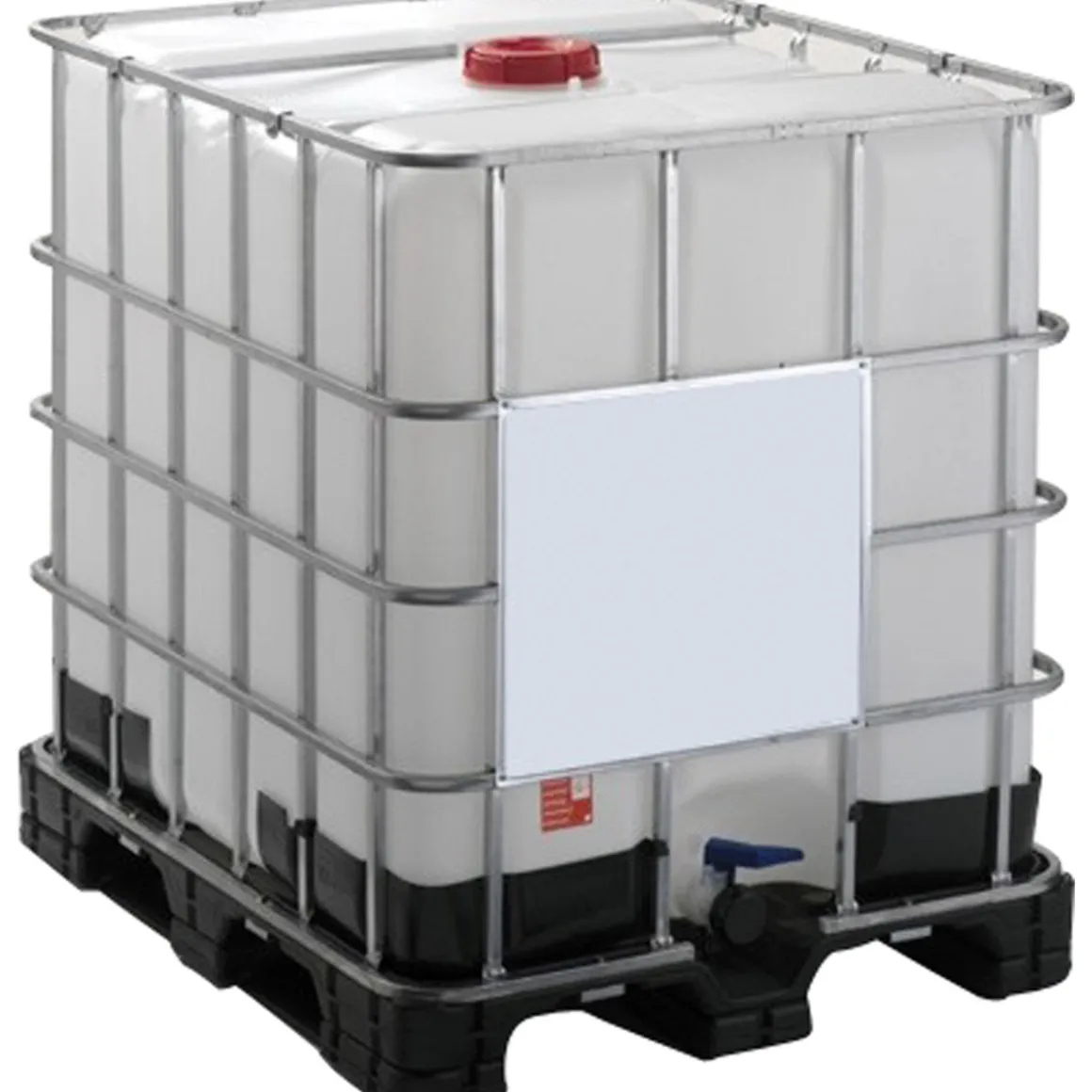 - – Lieferumfang: Innenbehälter, Umbehälter (Stahldrahtgitter), Kunststoff-Palette, Schrifttafel, Auslaufarmatur