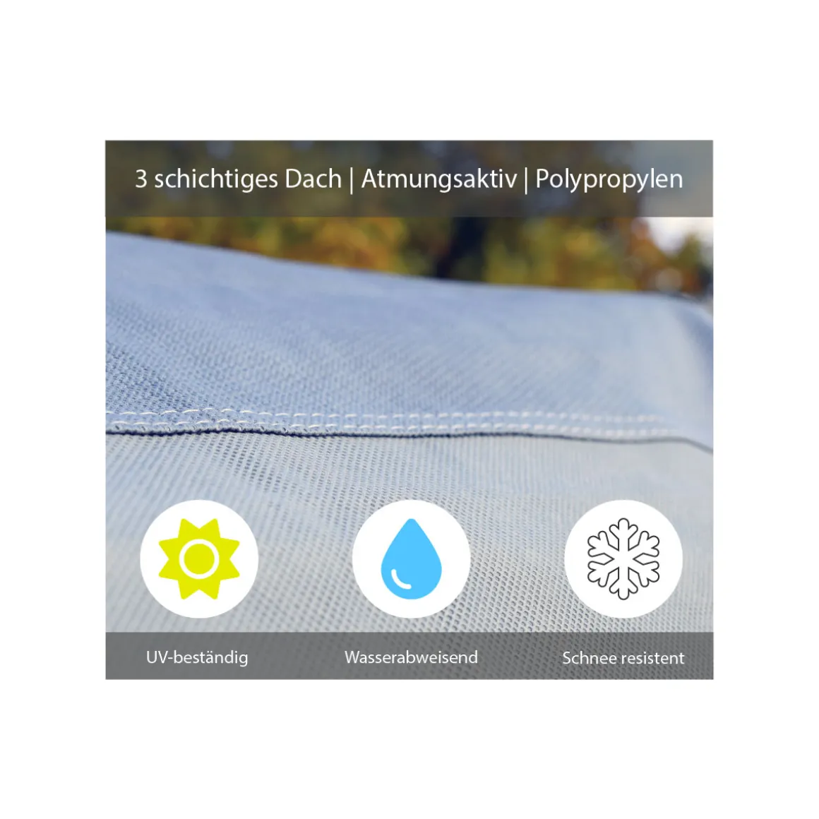 - Wasserabweisendes Dach 3-lagig und Seitenteile 1-lagig aus Faservlies