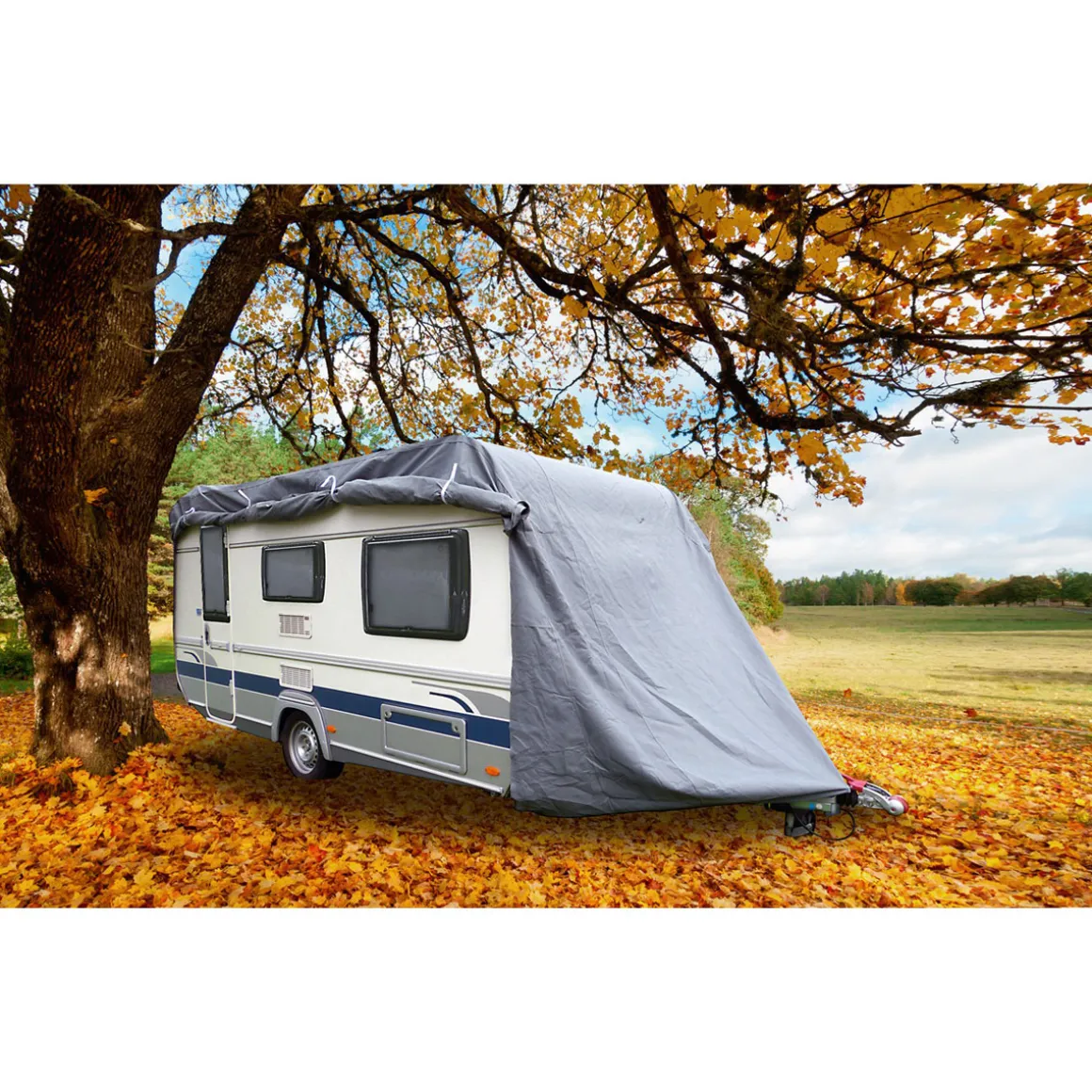Die strapazierfähige Wohnwagen Abdeckplane von GreenYard® ist der ultimative Schutz für Ihren Wohnwagen. Sie ist sowohl UV-beständig, als auch wasserabweisend und schützt somit nicht nur vor Staub und Schmutz, sondern auch vor Nässe und Sonneneinstrahlung.