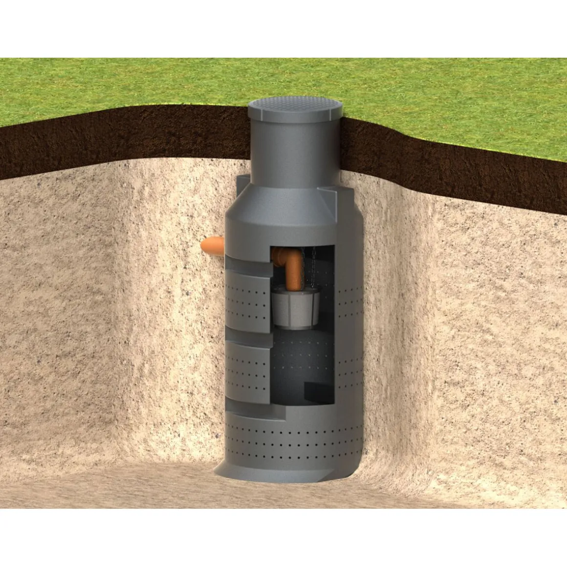 Der Sickerschacht 1.000 l eignet sich für die Rückhaltung, Versickerung und Entwässerung von Regenwasser. Der Zulauf in den Sickerschacht ist mit einer Gummilippendichtung DN 100 vorbereitet. Das einlaufende Regenwasser wird über einen im Schacht abgehängten Grobschmutz-Filterkorb gefiltert. Der Sickerschacht ist einfach zu warten, inspizieren und reinigen.