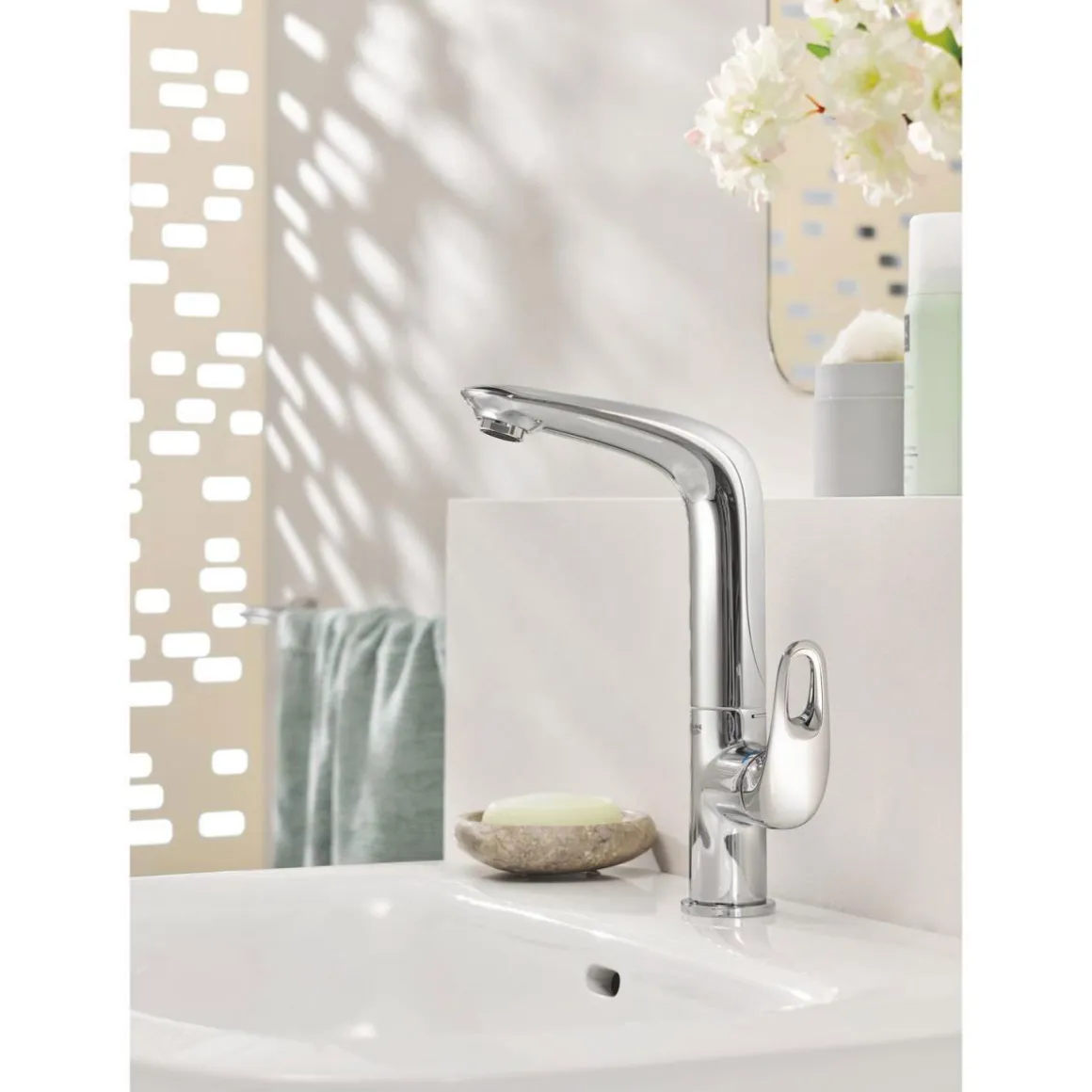 Die Grohe Einhand-Waschtischbatterie Eurostyle L-Size Hebel offen ist ideal für alle Kunden, die auf der Suche nach einer hochwertigen Armatur mit modernem Design sind. Dank ihrer einfachen Bedienbarkeit eignet sie sich besonders gut für Familien oder ältere Menschen.