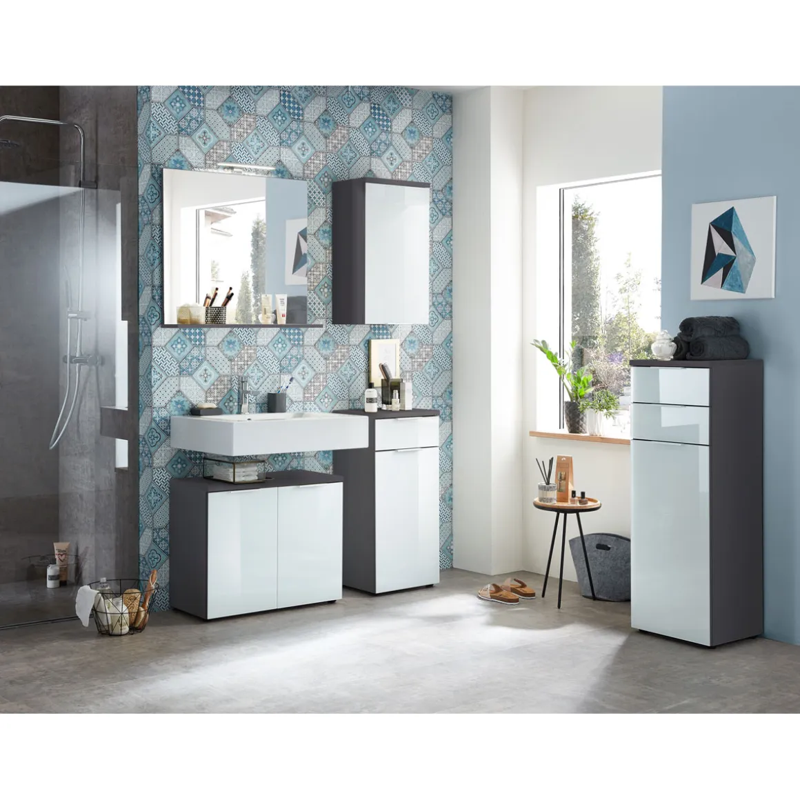 - Korpus in der Farbkombination Graphit-Weiß fügt sich harmonisch in verschiedene Einrichtungsstile ein