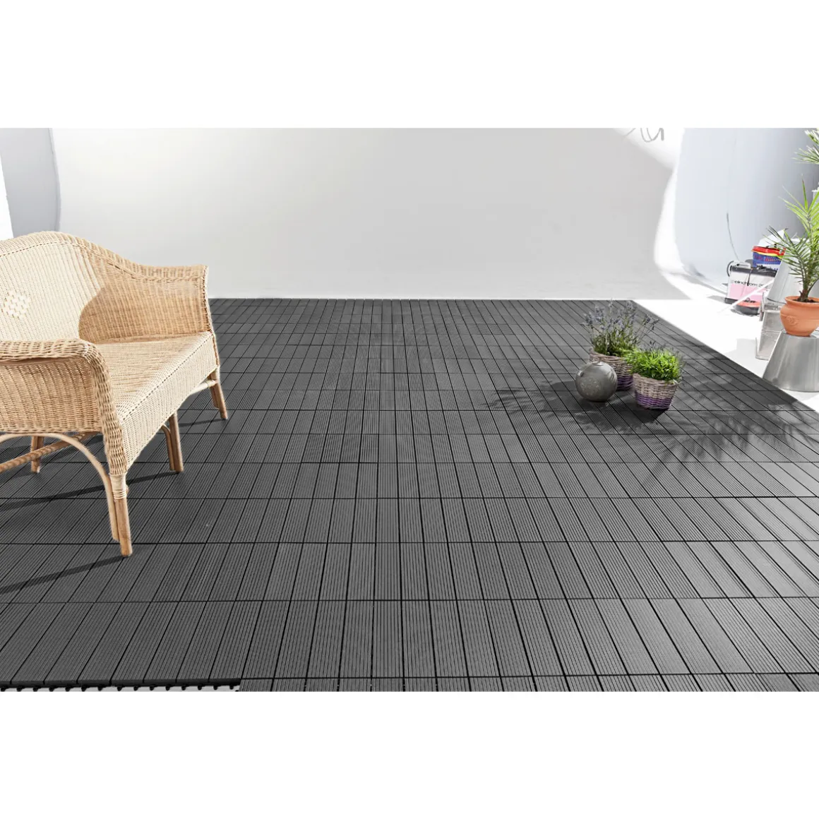 Die WPC-Klickfliese in Anthrazit überzeugt nicht nur durch ihre Optik, sondern auch durch ihre Robustheit und einfache Verlegung. Dank des Klicksystems können Sie Ihre Terrasse oder Balkon schnell und unkompliziert verschönern. Zudem ist das Material besonders pflegeleicht und langlebig. Bestellen Sie jetzt die WPC-Klickfliesen bei !