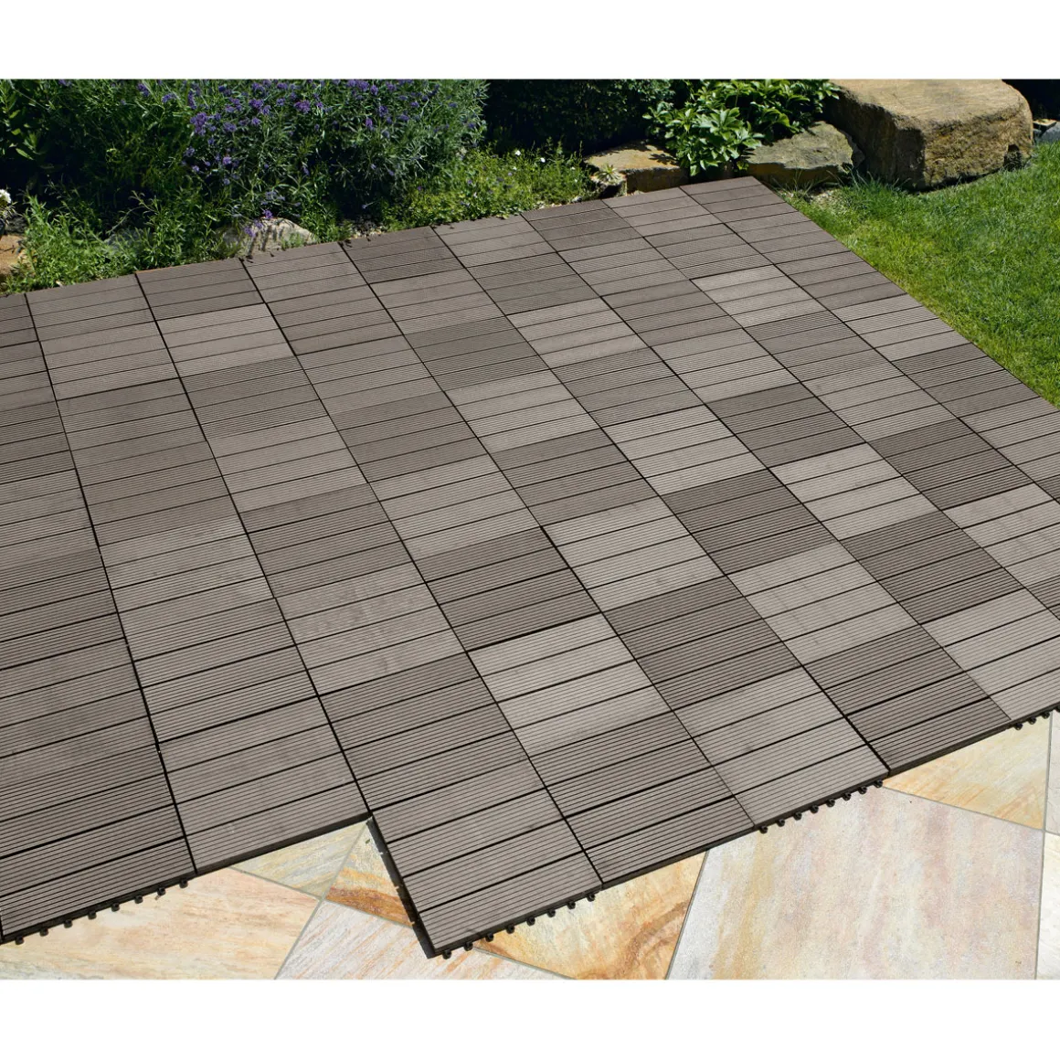 Die WPC-Klickfliese ist ideal für Kunden geeignet, die eine moderne und pflegeleichte Gestaltung ihrer Terrasse oder Balkon bevorzugen. Auch für Mieter ist die Fliese eine gute Wahl, da sie ohne großen Aufwand wieder entfernt werden kann.