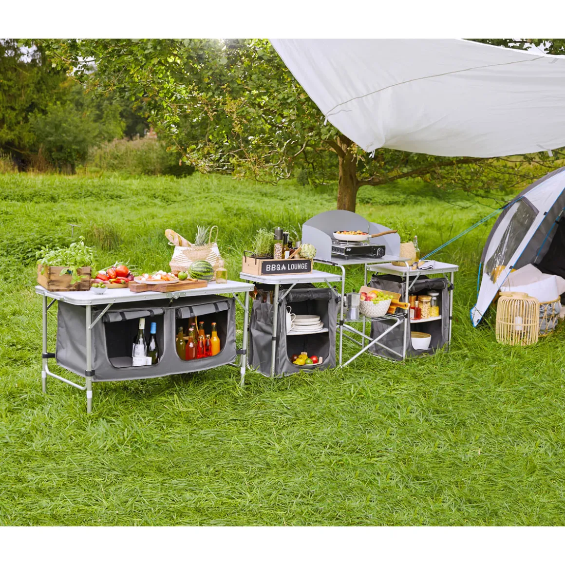 Genießen Sie Ihre Camping-Ausflüge mit dem Haveson Camping-Tisch, der Ihnen dank seiner klappbaren Funktion und praktischen Ablagefächer ein komfortables Erlebnis bietet.