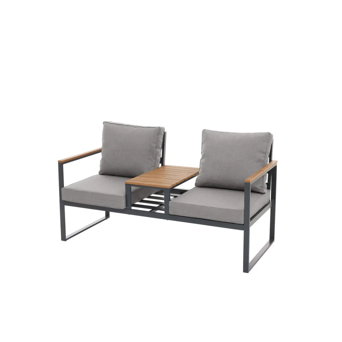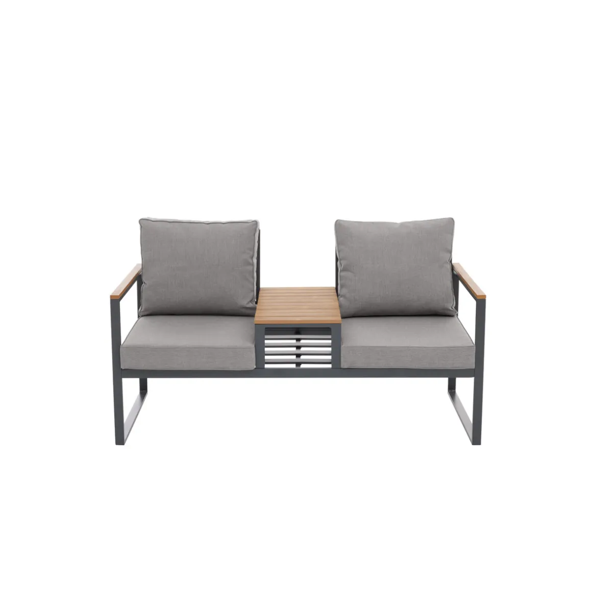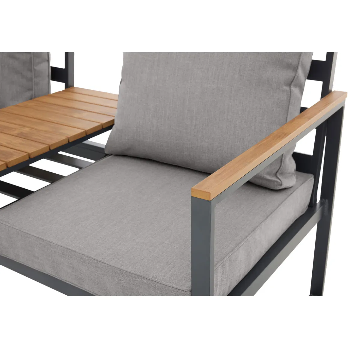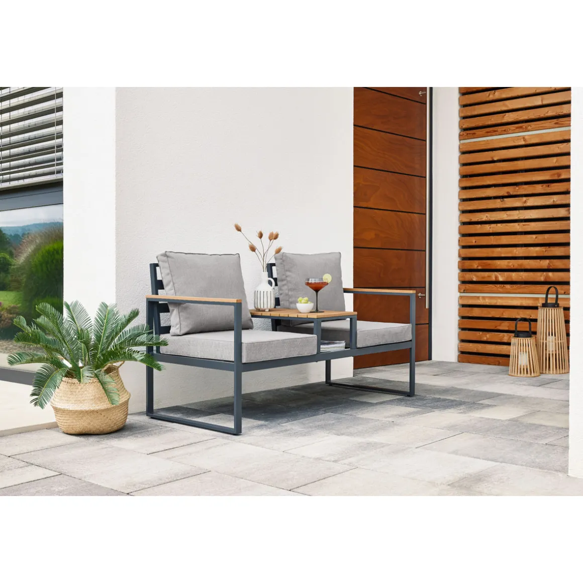 Sie lieben es, Ihre Freizeit im Freien zu verbringen? Dann wird die Haveson Gartenbank Konstanz Ihr neuer Lieblingsplatz! Diese Bank vereint Funktionalität mit Design und bietet Ihnen alles, was Sie brauchen: Komfortable Sitzplätze mit weichen Auflagen laden zum Verweilen ein. Der integrierte Mitteltisch ist perfekt geeignet, um Ihre Tasse Tee oder kleine Snacks abzustellen. Die edle Kombination aus grauem Gestell und Holzoptik-Details bringt modernes Flair in Ihren Außenbereich. Egal ob Terrasse oder Garten – diese Bank fügt sich nahtlos ein und wird schnell zum Mittelpunkt Ihrer Outdoor-Oase.