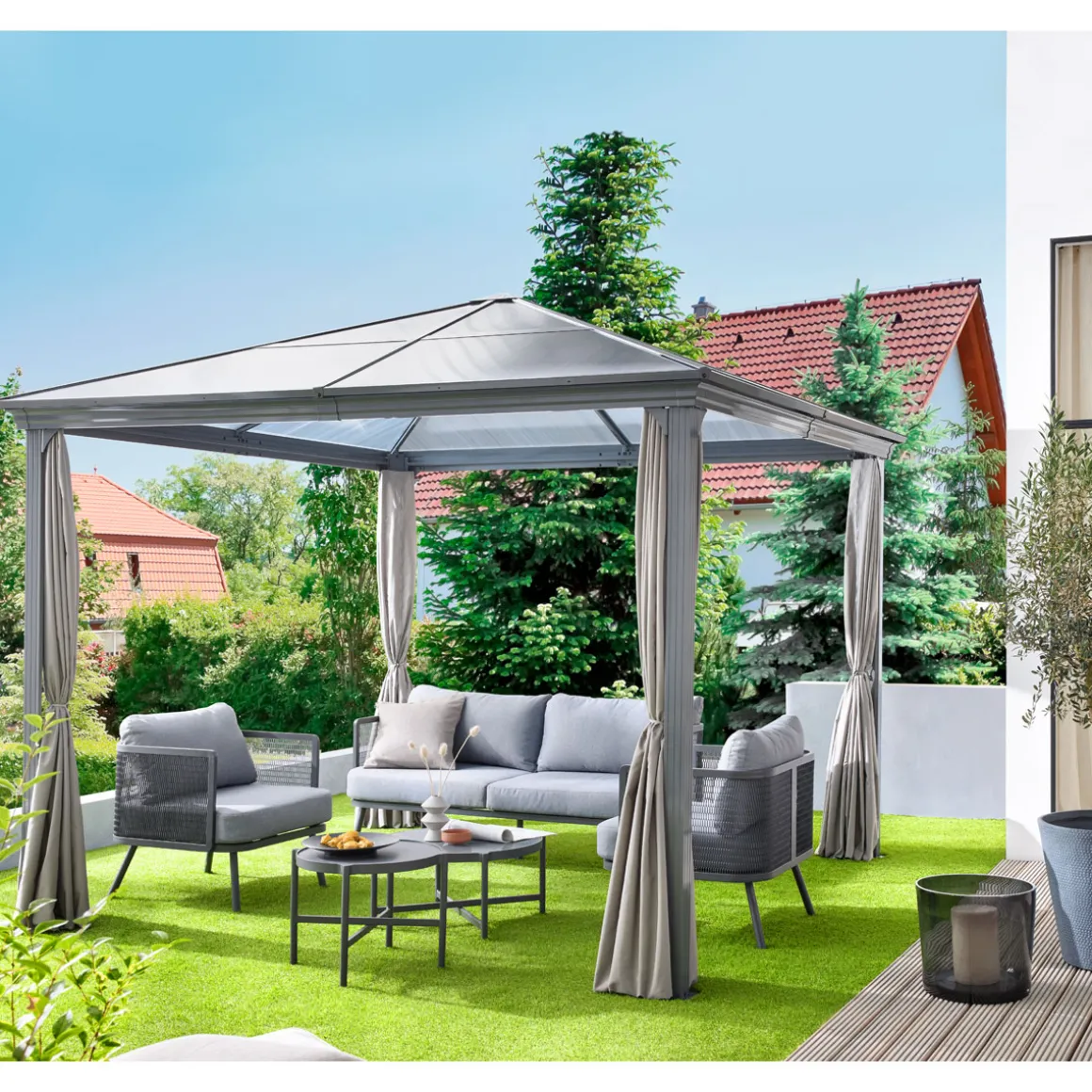 Mit dem Haveson Pavillon Norderney holen Sie sich ein Stück Urlaubsfeeling in den eigenen Garten. Der robuste und stilvolle Pavillon bietet nicht nur Schutz vor Sonne und Regen, sondern ist auch ein echter Blickfang.