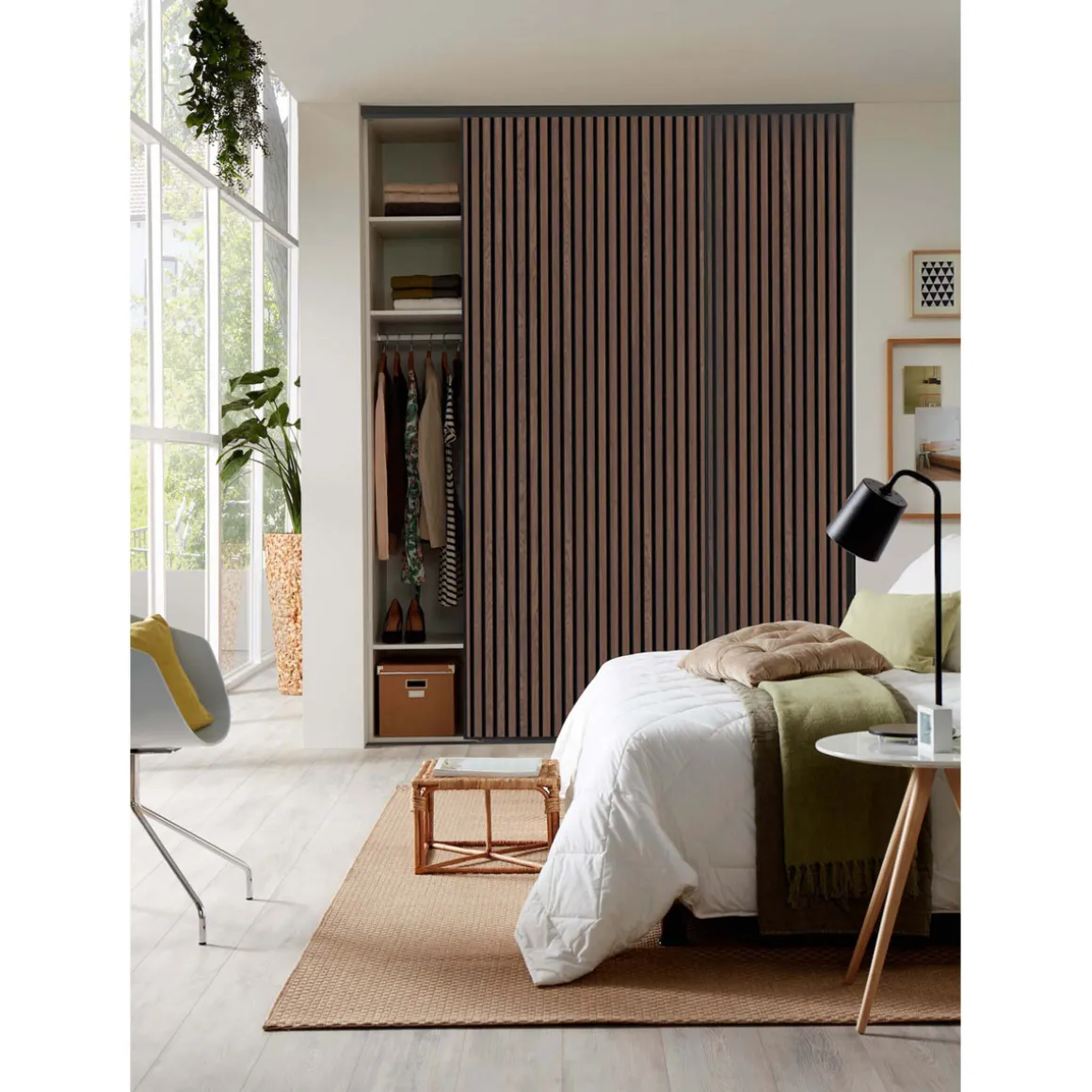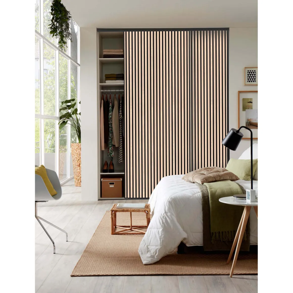 Hibitaro Lamellen-Schiebeitür mit Akustikeffekt als Schrank- / Nischentür