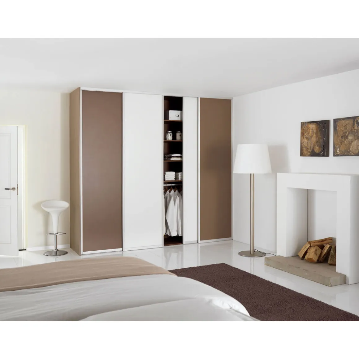 | Lieferumfang: | Maßgefertigte Laufschienen, maßgefertigte Türfügel, Montagematerial, Stopper |