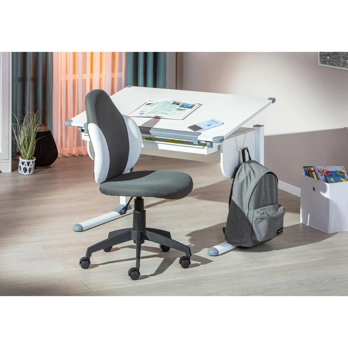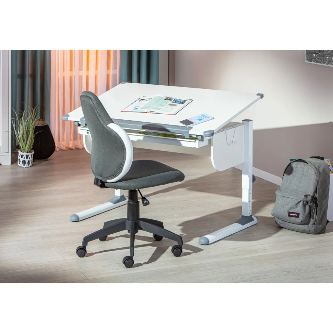 Der Inter Link Drehstuhl Jessi ist genau das Richtige für alle Kunden, die Wert auf Komfort und Stil legen. Ob Sie stundenlang am Schreibtisch arbeiten oder konzentriert lernen – dieser Stuhl bietet Ihnen den perfekten Halt. Die höhenverstellbare Funktion passt sich Ihren Bedürfnissen an und unterstützt eine gesunde Haltung. Das moderne Design in Grau-Weiß macht ihn zum Blickfang in jedem Raum. Besonders geeignet ist er für Menschen, die viel Zeit am Computer verbringen und dabei nicht auf Bequemlichkeit verzichten möchten.