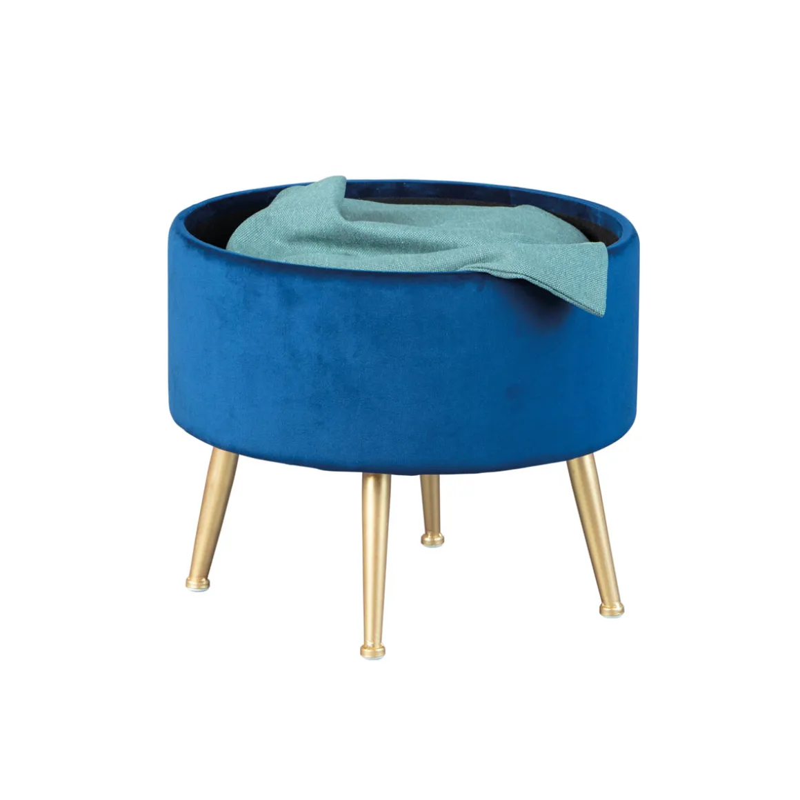 Der moderne Sitzhocker ist mit wertigem Samt bezogen und in drei trendigen Farben erhältlich: Schwarz, blau und grün. Er ist bequem gepolstert und unter der abnehmbaren Sitzfläche befindet sich sehr viel praktischer Stauraum zum Verstauen von Accessoires wie Schal, Handschuhe und Mützen. Alle drei Farben ergänzen hervorragend das goldfarbene Metallgestell. • Moderner Sitzhocker• Abnehmbare Sitzfläche für Stauraum• Wahlweise in schwarz, blau oder grün• Material: Samt, 100 % Polyester, MDF, Metall• Aufgebaute Maße: ca. 41 x 41 x 38 cm BxTxH