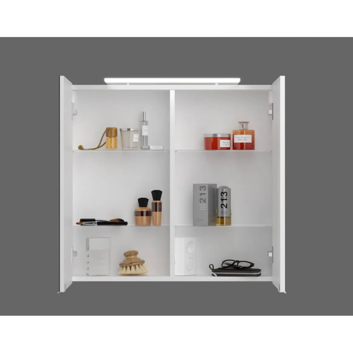 Der Spiegelschrank ist ideal für alle Kunden geeignet, die auf der Suche nach einer praktischen Aufbewahrungsmöglichkeit sind und dabei nicht auf modernes Design verzichten möchten. Durch die integrierte Beleuchtung wird das Badezimmer optimal ausgeleuchtet.
