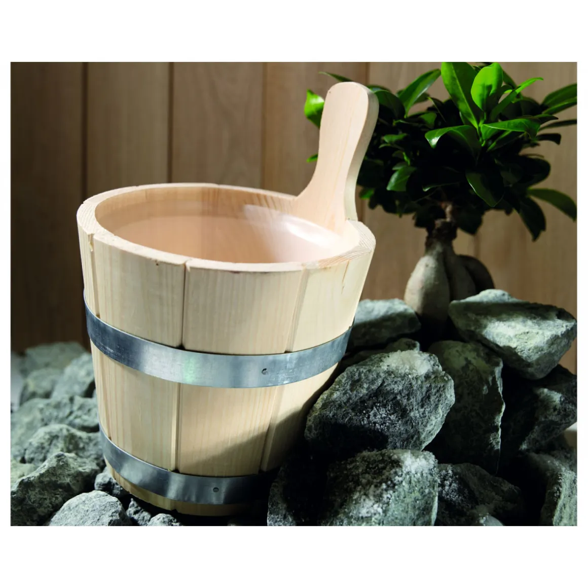 Mit dem Karibu Aufgusskübel holen Sie sich das volle Saunavergnügen nach Hause. Das hochwertige Fichtenholz sorgt für eine angenehme Optik und eine lange Lebensdauer. Dank seiner Größe von 4 Litern haben Sie ausreichend Platz für Wasser und können so Ihre individuellen Duftnoten genießen. Der Lieferumfang inklusive Bandeisenreifen macht die Handhabung besonders einfach und sicher.